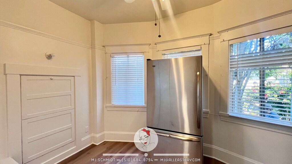 Come home to this lovely 1/1 walking distance to shopping, restaurants, public transportation! The space is light, bright and cozy with high ceilings, hard wood flooring, and plenty of windows to bring in the light. The eat-in kitchen is sunny with ample cabinet and storage space. The unit has wood crown molding, baseboards and beautiful built-in cabinets and bookshelves throughout. Tenant is responsible for all utilities including water and garbage. No washer and dryer in unit or on premises. Street parking only. There is no off-street parking available with this unit. Virtual Walk Through --> In person tour --> Maryanne “MJ” Schmidt Office DRE 02125244 All East Bay Properties DRE# 01516255 *We are an Equal Opportunity Housing Provider and follow all fair housing laws. For more information, contact California Department of Fair Housing and Employment (DFEH) at *We are an Equal Opportunity Housing Provider and follow all fair housing laws. For more information, contact California Department of Fair Housing and Employment (DFEH) at .