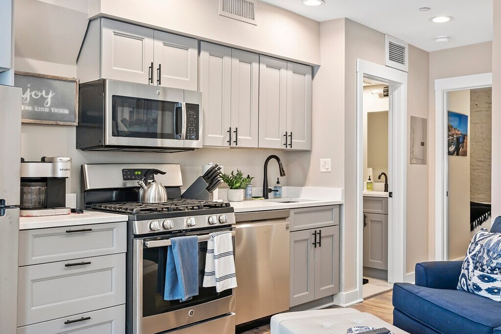 Stay at this perfetto apartment in the heart of Boston's North End. This newly renovated 1st-floor, 1-bedroom apartment is front-facing on a relatively quiet street. The bedroom faces the rear. Feel at home with the mix of old-world Italy and downtown Boston right outside your door. This apartment features a queen-size bed, a fully equipped kitchen and bathroom, a pullout sofa, laundry in unit, central AC/heat, an eating area, and a smart HD TV. 24/7 access and coded entry will be provided for our unit. Fall in love with the mix of old world Italy and downtown Boston right outside your door. Registration Details: STR-546550 Registration Number: STR-546550 [SI]