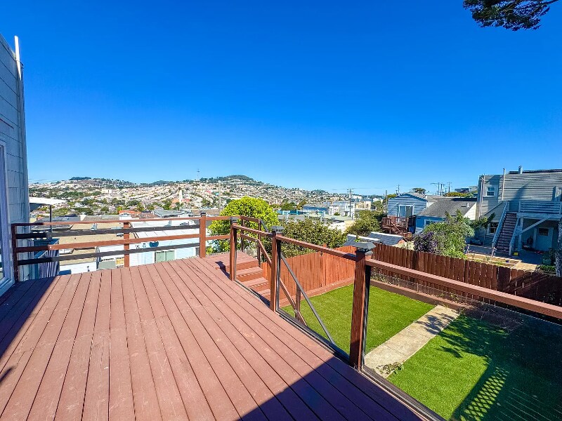 Property Id: 2197779 Remodeled kitchen with new gas stove, countertops, and cabinets. Large living room and separate dedicated dining / office room connected to a central atrium with skylight. 1 dedicated driveway parking spot included. Private deck, shared backyard. No dishwasher. No laundry on site. 6 minutes to Stonestown Mall: Target, Starbucks, Whole Foods, 85 Bakery, Chipotle and also close to Hmart and Westlake Shopping Center. Proximity to San Francisco State University, and Lake Merced trails for jogging and biking. Close to the Muni M Ocean View line along 19th Avenue and Randolph and to Daly City BART for regional transit. Nearby recreation includes Merced Heights Playground and Minnie and Lovie Ward Recreation Center. Lease Duration: 1 Year Minimum. Security Deposit: 1 Month Deposit. Pet Policy: Pets allowed with deposit. No smoking. Tenant pays all utilities: water, gas, electric, trash
