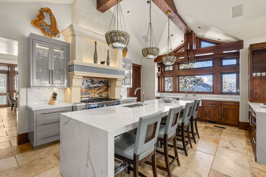 Discover the ultimate Aspen Highlands lifestyle in this exceptional 6-bedroom mountain home, perfectly positioned for true ski-in/ski-out convenience. Nestled slopeside on Thunderbowl ski run, this residence blends refined alpine elegance with year-round adventure right outside your door. Step inside to soaring ceilings, expansive windows that provide unparalleled mountain views, and a warm great room anchored by a dramatic mirrored double-sided fireplace. The layout flows effortlessly into an elegant dining room, perfect for fireside dining, and gourmet chef’s kitchen featuring premium appliances, marble countertops, custom cabinetry, breakfast table, and a spacious island ideal for gathering after a day on the mountain. The home offers six beautifully appointed bedrooms, including a luxurious primary suite with private office, spa-inspired bath, and panoramic views of Thunderbowl. Multiple guest suites ensure comfort and privacy for family and friends. Entertain with ease in the lower-level game lounge, that includes a billiards table, shuffleboard, and well-equipped bar, or if you want to have a movie night after a day on the slopes, settle into the private theater room. The lower level also includes a gym for your morning workouts. Unwind outdoors on the generous slope side patio with a hot tub, grill, and dining area that celebrate Aspen’s iconic scenery. Additional amenities include a dedicated ski locker room with direct slope access, heated driveway, and attached garage. Whether you’re hosting apres-ski evenings, exploring endless hiking trails, or simply soaking in the tranquility of the Rockies, this remarkable home is your front-row seat to the best of Aspen Highlands. Rentals include access to the Ritz Carlton pool, spa, and fitness center.