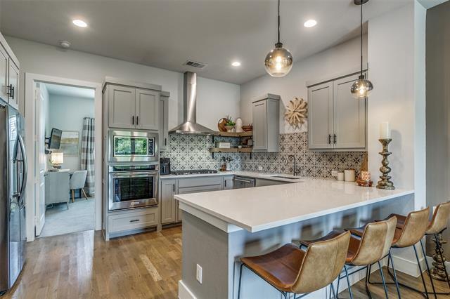Modern luxury meets urban convenience in this gorgeous townhouse ideally located in the heart of East Dallas! Quick access to Lower Greenville, Knox Henderson, downtown, Lakewood Centre, & steps to historic Swiss Ave! This 3 bed, 3.5 bath home features an open floorplan, abundance of natural light, & outdoor living spaces on each level. This ideal layout offers one bedroom on each level, complete with ensuite bath and large closet. The huge rooftop deck is a showstopper complete with storage closet, cantina lights, & downtown views! Washer, dryer, refrigerator, & beverage fridge on 3rd floor all stay. Additional amenities include: overhead storage in the attached 2 car garage, fenced in front yard perfect for small pets, security system w video doorbell & garage camera (can be included for fee), keyless front door entry, gated community w call box access, weekly yard maintenance. Don't miss this gem!