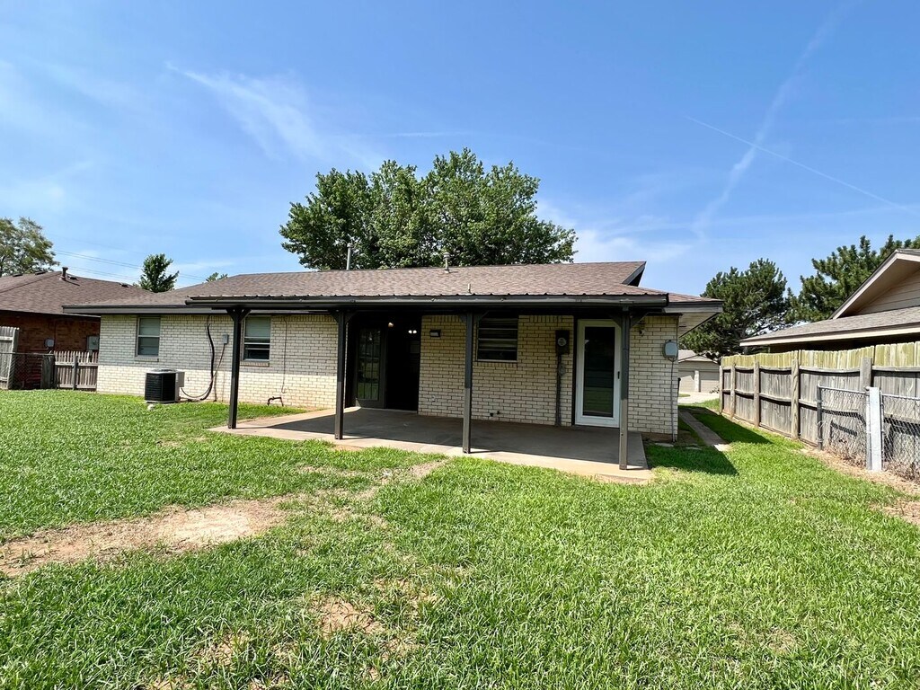 This charming 3 bedroom, 1.5 bathroom home located in Lawton, OK offers two spacious living areas, perfect for entertaining or relaxing. The brand new luxury vinyl plank flooring throughout adds a touch of elegance, while the fenced yard and covered patio provide a private outdoor oasis. With a double driveway for ample parking space, this home is not only convenient but also located in the desirable Macarthur School District. Don't miss out on the opportunity to make this house your new home!