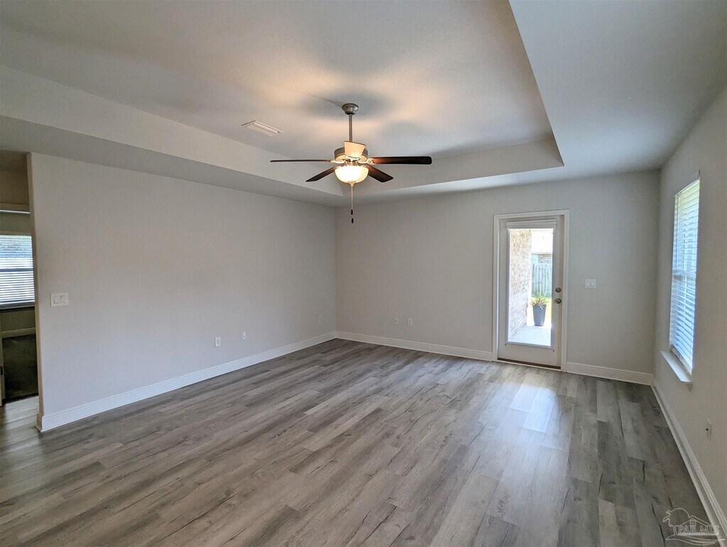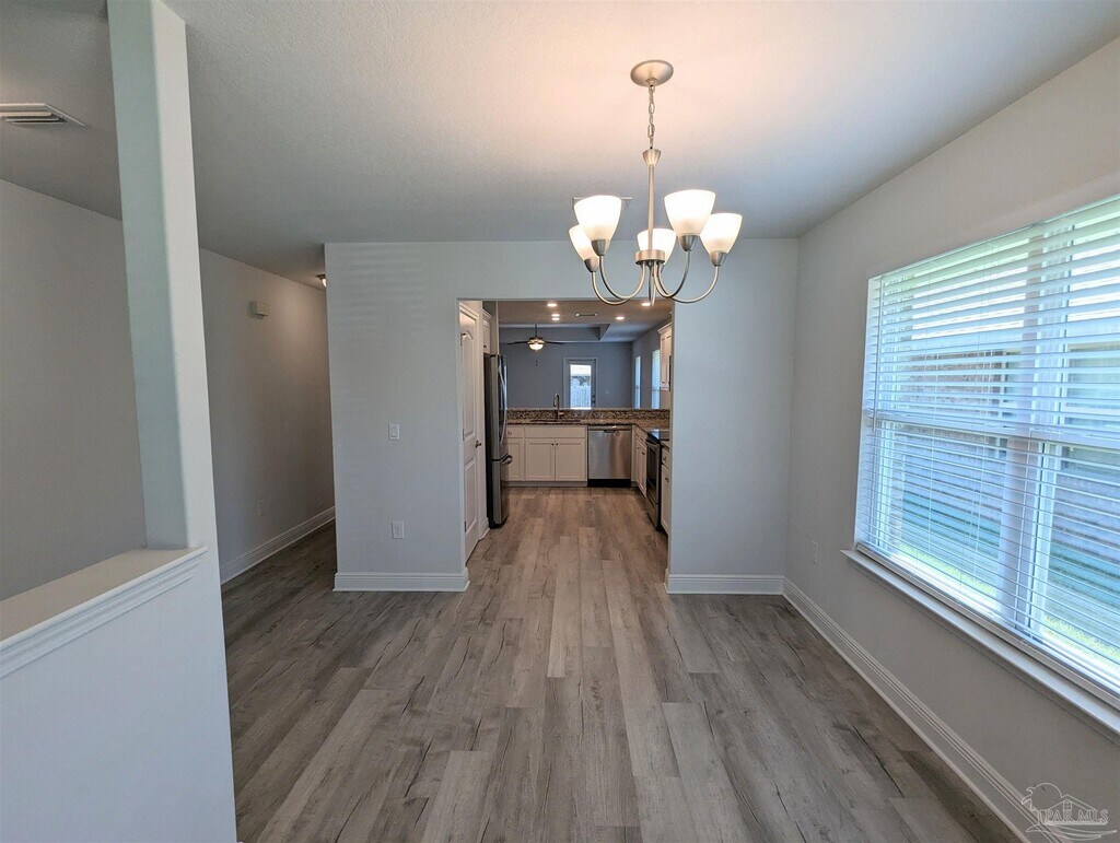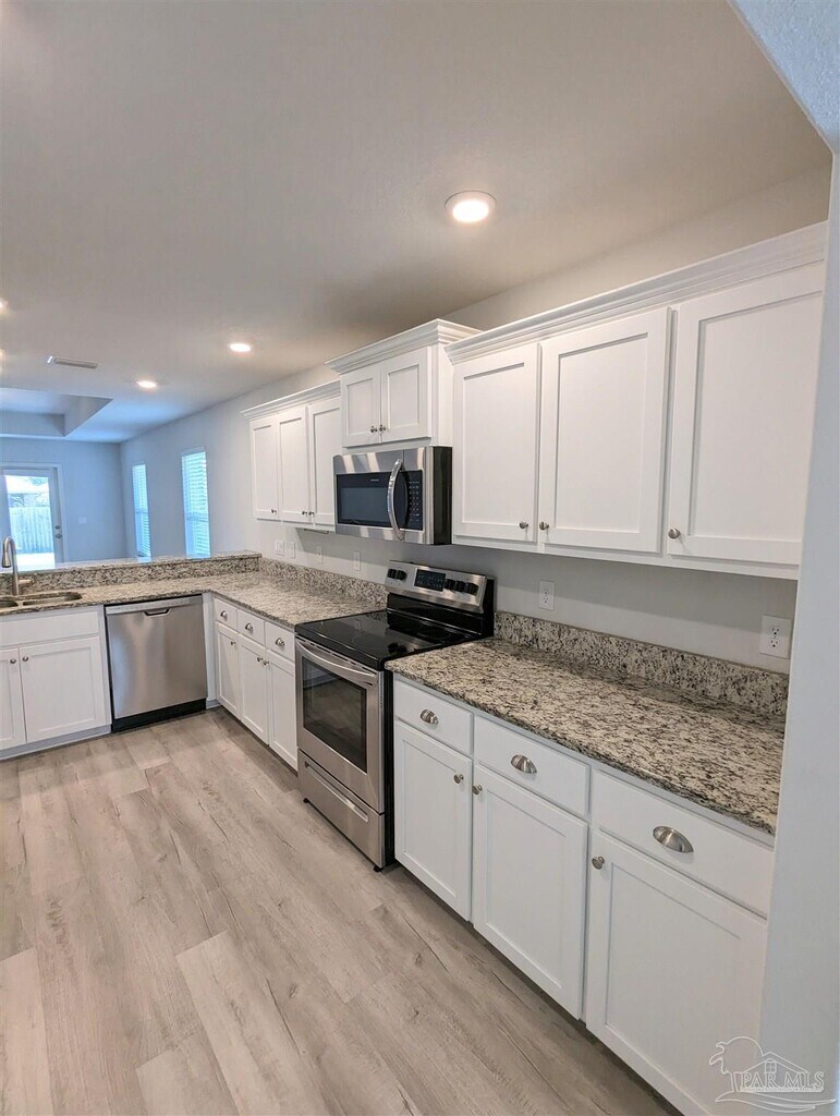 4723 Frances St is a modern 3 bedroom,2 bath home with large 2-car garage located in the popular Ashley Place subdivision - centrally located in the booming Pace corridor,minutes from shopping,I-10,Milton and a quick drive into Pensacola. With an inviting front porch welcoming you into the open floor plan this home features a bay window in the dining area,open kitchen with granite countertops,LED recesses lighting,and luxury vinyl tile throughout the main living and wet areas with carpet in each of the bedrooms. The master includes a spacious walk-in closet and a bathroom with a garden tub and separate walk-in shower. Each of the additional bedrooms are well-sized with walk-in closets and the fully fenced yard is great for privacy - landscaping included with rent! This property requires participation in the MSPM Resident Benefit Package for an additional monthly fee. Additional information on this program can be found upon submission of application.