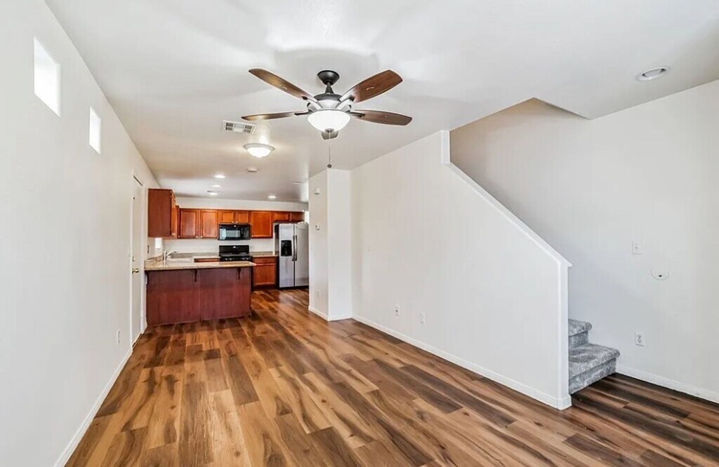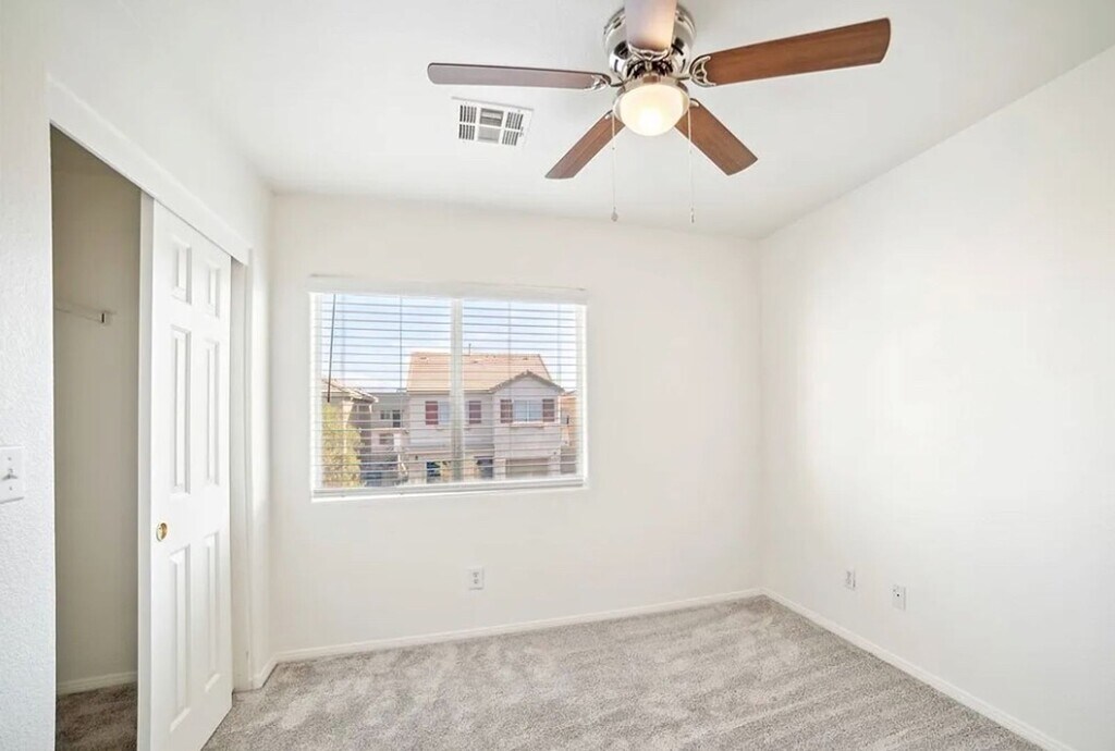 Welcome to this spacious 3-bedroom, 2.5-bathroom home located in the vibrant city of Las Vegas, NV. This house features an open floor plan, perfect for entertaining guests or simply enjoying family time. The first floor boasts beautiful laminate flooring, while the second floor offers cozy carpeting for added comfort. Stay cool and comfortable with ceiling fans throughout the home. The convenience of a laundry room upstairs makes chores a breeze. Don't miss out on the opportunity to make this house your new home sweet home. Home is professionally managed by Century 21 Americana Property Management. Pets considered on case by case basis and may be limited in quantity. Additional Pet Deposit will apply per pet if approved. No aggressive breeds due to liability/insurance purposes. Renters Insurance will be required prior to move in. Tenant will be billed monthly $25 for sewer and $25 for Trash. You can apply online at Application fee is $75.00 per adult who will occupy the property, all must apply and Application fees are NON REFUNDABLE.