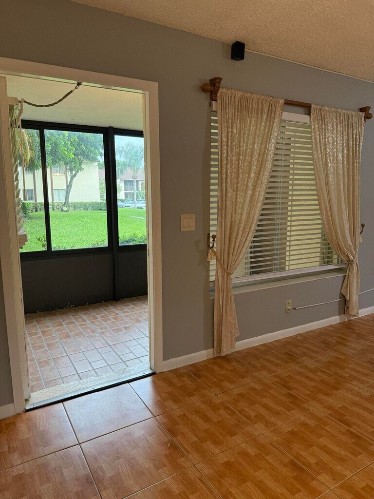FIRST MONTH FREE...!!! with signed lease by October 15, 2025...!!! 2 bed/2bath ground floor condo in a quiet gate community. Tile throughout, walk-in closets, side-by-side washer/dryer, huge pantry, granite kitchen countertop, screened sun room with glass sliders that provides extended living space, accordion hurricane shutters. The Community has swimming pool and club house, tennis courts along with walking trails and plenty of green space.