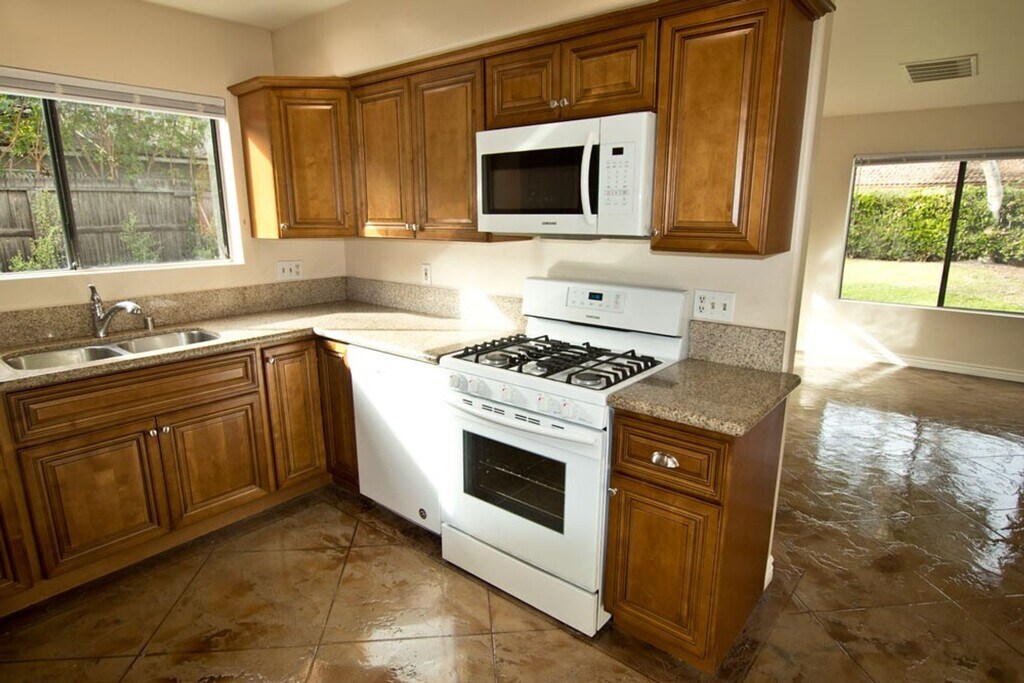 This 4 BR/3 Full BA (1560 sq feet) single-family home has been fully remodeled less than 4 years ago. It features a two car garage, oversized rooms, custom epoxy floors downstairs, and has LED lighting. The kitchen is outfitted with beautiful all-wood cabinets with two lazy-susan corner shelves, pull-out pantry drawers, soft close hinges, and gorgeous granite counters. It has a brand new forced-air heating system with Air Conditioning that is oversized so you can quickly heat and cool your home. Large private back yard is GREAT for entertaining and the 2-car garage is wider inside than most in the area. The driveway is shared with two other homes and as you are the back house, you are off the street by about 40 yards. Also, there is a very large laundry room with washer and dryer hookups. Appliances include Gas Range, Microwave, Dishwasher, and disposal. The city pays for trash, the owner pays the gardener and we have locking mailboxes at the street for your convenience. Easy to use online maintenance request and payment system. We do allow up to 2 pets TOTAL. Dogs are $50 each per month and cats are $30 each per month. We must pre-approve each pet as there are certain breeds that are not allowed by our insurer. There is absolutely no smoking. We do not accept applicants who have past evictions or owe money to past landlords
