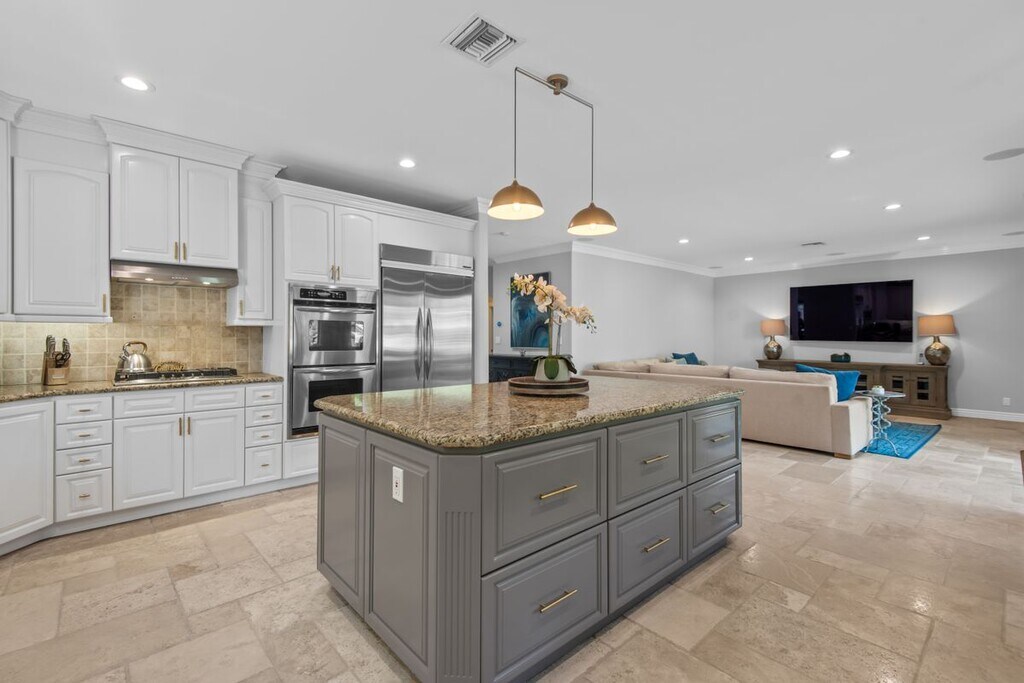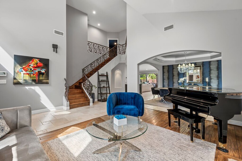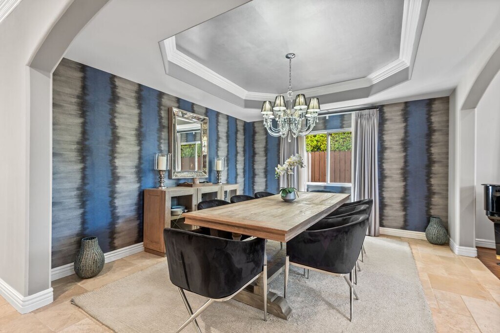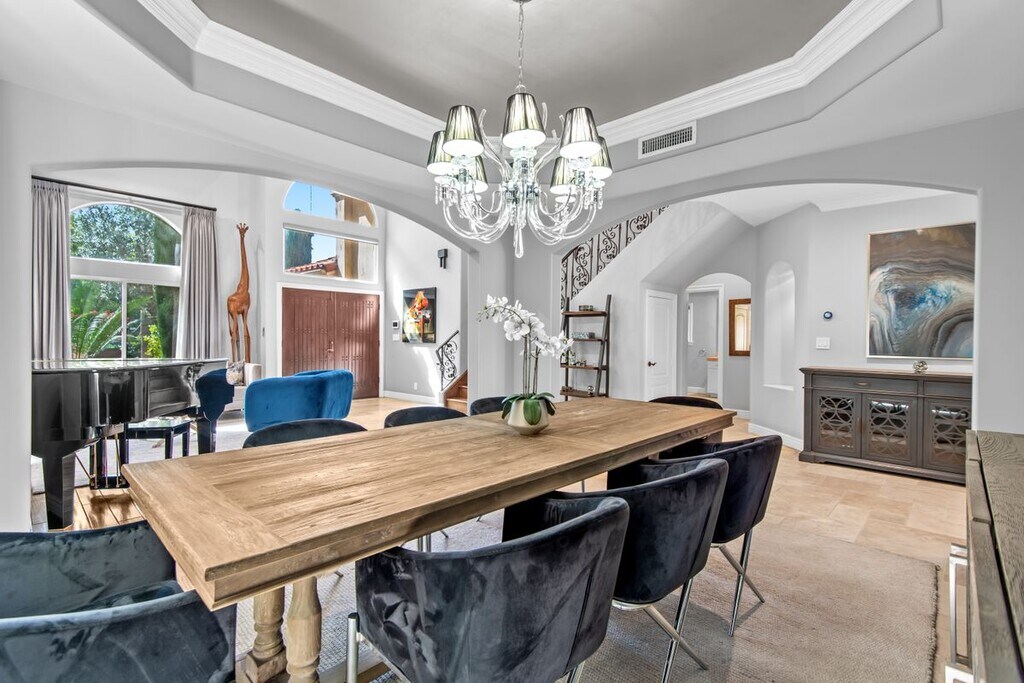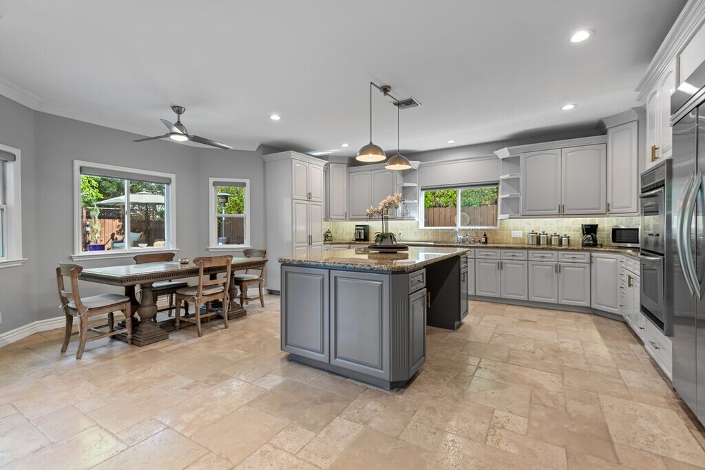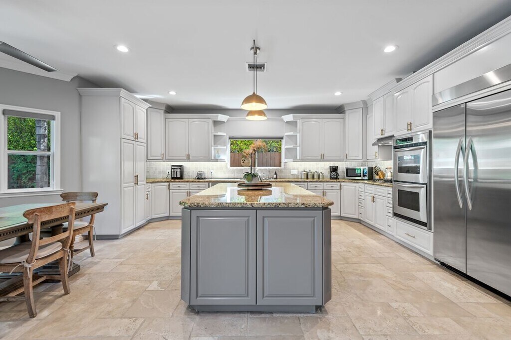 Welcome to 4724 Noble Ave, an exquisite Mediterranean-style residence nestled in the heart of Sherman Oaks. This stunning 5-bedroom, 4-bathroom home spans over 3,311 square feet and delivers the perfect blend of timeless elegance, space, and California indoor-outdoor living. The main level features a chef-inspired kitchen with granite countertops, stainless steel appliances, custom cabinetry, and a large center island ideal for both everyday living and entertaining. Natural light fills the open-concept living and dining areas, highlighted by crown molding and recessed lighting. Thoughtfully designed for flexibility and function, the first floor includes a private bedroom and full bath, ideal for guests, in-laws, or a home office. Upstairs, the expansive primary suite offers a serene retreat with a spa-like bathroom dual closets and a balcony overlooking the backyard. Three additional guest bedrooms, each with their own en suite baths, provide comfort and privacy for everyone. Step outside to your resort-style backyard, complete with a sparkling pool, elevated spa, built-in firepit, and a fully equipped outdoor kitchen, perfect for alfresco dining, weekend BBQs, and entertaining under the stars. Lush landscaping, tranquil water features, and multiple lounging areas complete this private oasis. Additional amenities include central air and heat, an indoor laundry room, gated driveway, attached two-car garage, and excellent curb appeal. The home can also be leased fully furnished, offering a rare turnkey opportunity in a premier location, call for rate details. Located just steps from Ventura Blvd's shopping and dining favorites. With easy access to the 101 and 405 freeways, this location offers unbeatable convenience in a peaceful, tree-lined neighborhood!