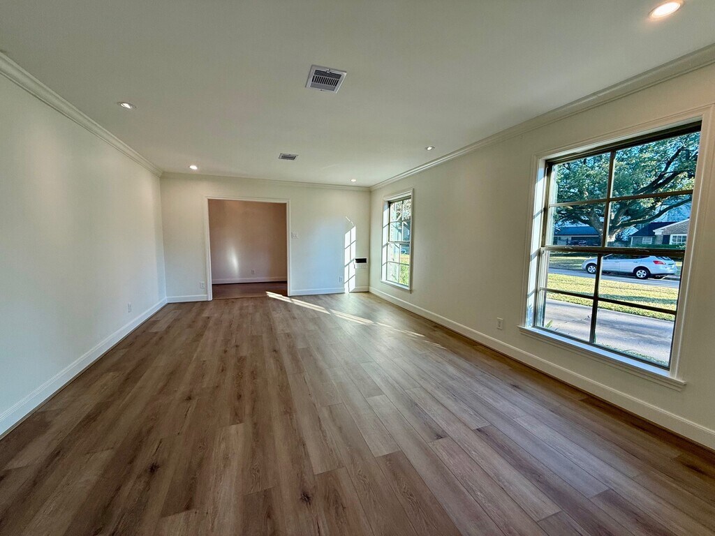 Completely remodeled and updated one-story ranch on an oversized lot in Afton Oaks,located on a quiet,closed street. This light-filled home offers three large bedrooms,including secondary bedrooms with double closets and a primary suite with a large remodeled walk-in closet. Two full baths and a powder bath feature updated counters and fixtures. The kitchen,family room,and utility room were taken down to the studs and redesigned with hardwood floors,new countertops,a 36" gas range,and a large island open to the family room,perfect for entertaining. Expansive windows provide abundant natural light throughout. Formal living and dining rooms complement the generous family room,which opens to a sun porch overlooking a deep swimming pool. A newly added bar with natural stone enhances entertaining. Oversized detached two-car garage includes a bonus room ideal for a gym or flex space. Prime central Houston location near River Oaks District and Highland Village. Move-in ready. MLS# 54796050