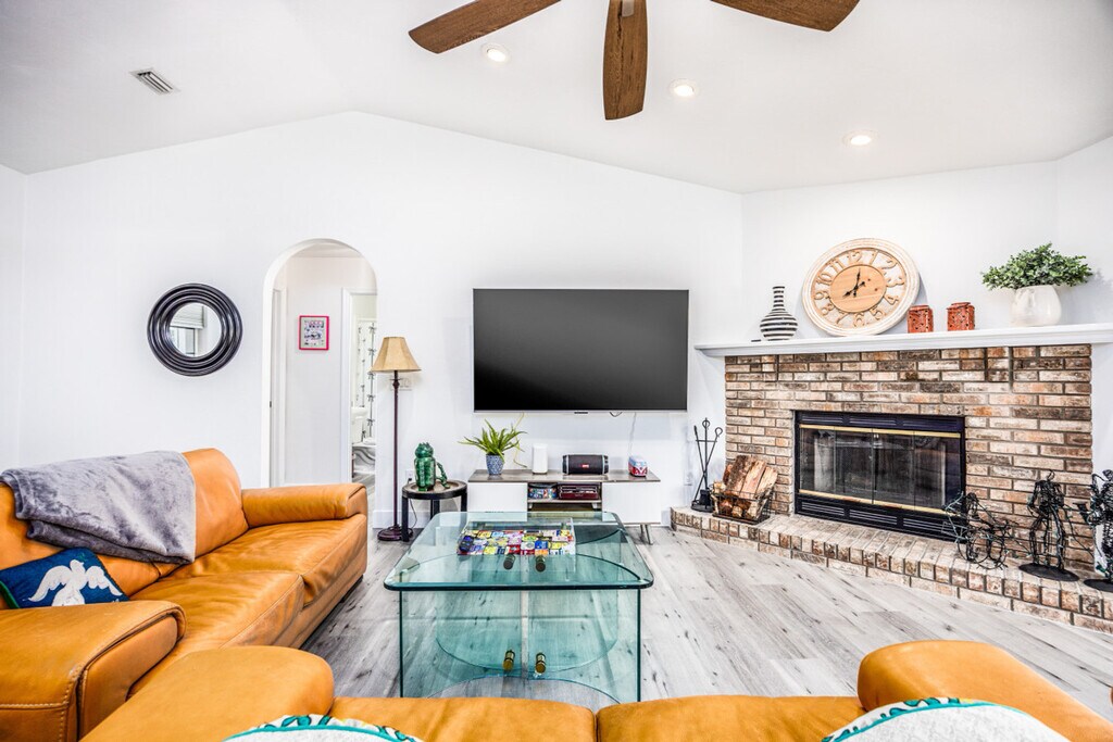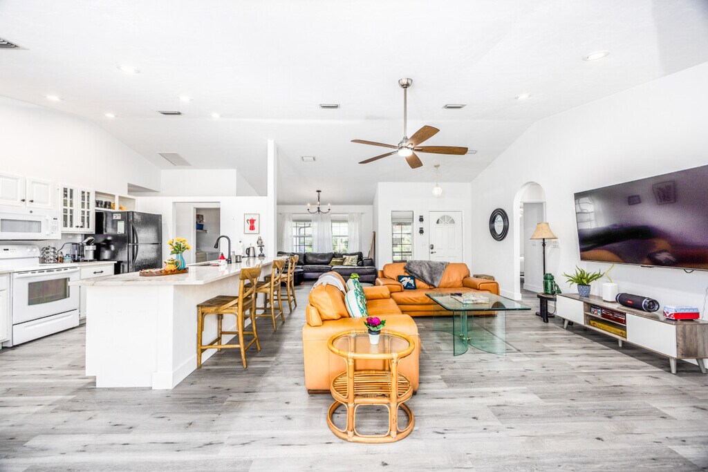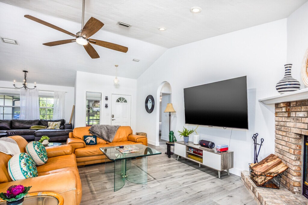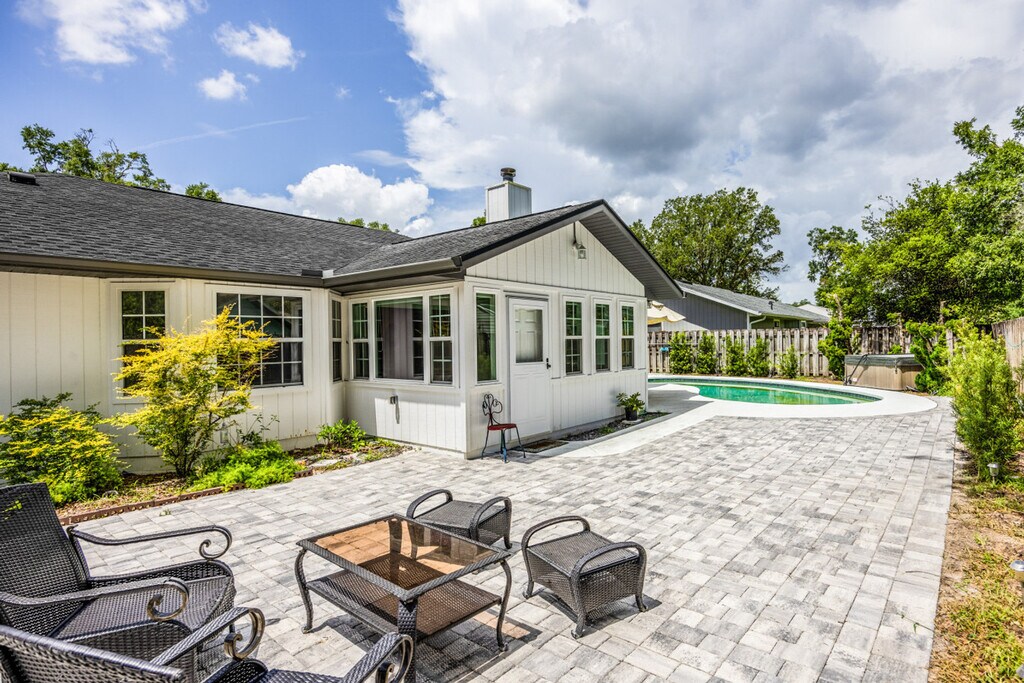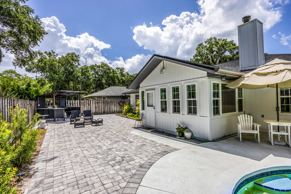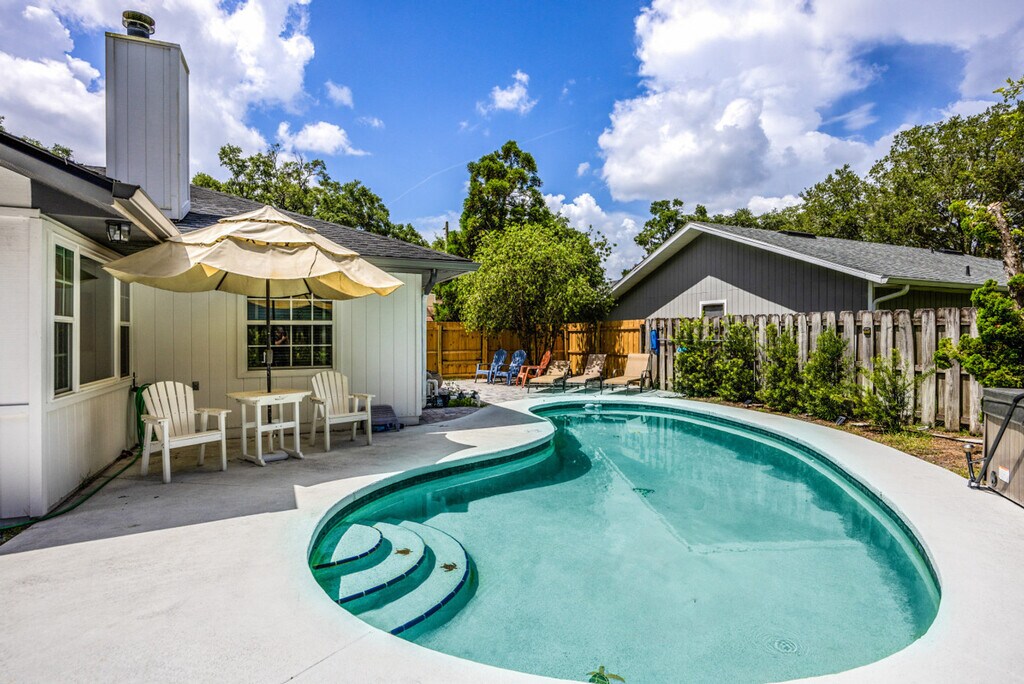 Welcome to your Gainesville getaway, a beautifully updated 3-bedroom, 2-bathroom home where you can feel at home and enjoy North Florida like a local. Located in a quiet, centrally located neighborhood, this spacious home features an open floor plan and a fully equipped kitchen. Enjoy the sparkling pool (pool is not heated), hot tub, bright Florida room with a large TV, and a second seating area on a pavered deck. Other amenities include high-speed Wi-Fi, smart TVs (indoor and out), a washer/dryer, and central AC. Free driveway parking and self check-in are available. Just minutes from the University of Florida & Shands, downtown Gainesville, shopping & dining on Newberry Rd, and local parks and springs, this home is the perfect base for comfort and convenience. Smoking inside the home will result in a $250 fee. Quiet hours are from 9:30 pm to 8 am, and you may be asked to leave without a refund for violations. One pet is allowed if disclosed during booking, otherwise, there is a $200 fee if caught with an unreported pet. Please clean up dog waste, or a $100 fee will be charged if dog waste is left behind. [SI]