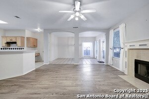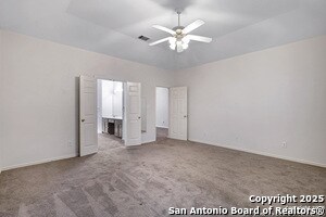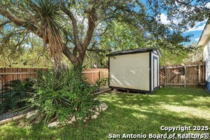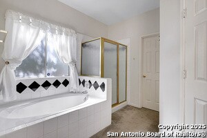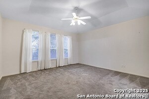 Nestled on a quiet cul-de-sac in the gated community of Shavano Bend, this gorgeous brick home offers comfort, style, and convenience. Inside, the main living areas feature luxury vinyl and ceramic tile flooring for easy maintenance, while the bedrooms are carpeted for added comfort. Ceiling fans are installed throughout for enhanced airflow. The home includes a formal dining room and a spacious breakfast nook ideal for casual dining. The fourth bedroom, located at the front of the home, can easily serve as a private office or creative space. The inviting living room showcases a beautiful fireplace, and the well-appointed kitchen is equipped with a built-in microwave, stove, gas cooktop, and included refrigerator. The primary suite features a generous layout with a double vanity, separate soaking tub, and walk-in shower. Step outside to enjoy the private backyard, complete with a relaxing hot tub and a convenient storage shed. Ideally located near the Medical Center and major thoroughfares, this home provides exceptional comfort and accessibility to dining, shopping, and entertainment options.