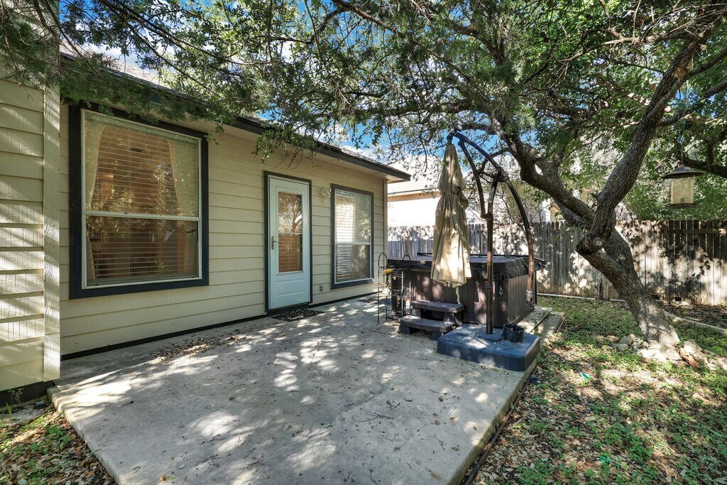 ***APPLICATION CURRENTLY UNDER REVIEW***Nestled on a quiet cul-de-sac in the gated community of Shavano Bend, this gorgeous brick home offers comfort, style, and convenience. Inside, the main living areas feature luxury vinyl and ceramic tile flooring for easy maintenance, while the bedrooms are carpeted for added comfort. Ceiling fans are installed throughout for enhanced airflow. The home includes a formal dining room and a spacious breakfast nook ideal for casual dining. The fourth bedroom, located at the front of the home, can easily serve as a private office or creative space. The inviting living room showcases a beautiful fireplace, and the well-appointed kitchen is equipped with a built-in microwave, stove, gas cooktop, and included refrigerator. The primary suite features a generous layout with a double vanity, separate soaking tub, and walk-in shower. Step outside to enjoy the private backyard, complete with a relaxing hot tub and a convenient storage shed. Ideally located near the Medical Center and major thoroughfares, this home provides exceptional comfort and accessibility to dining, shopping, and entertainment options. *Resident Benefit Package adds $47/month and includes credit reporting for rental payments to help boost your credit score, identity theft protection, on demand pest control, monthly delivery of HVAC filters, points earned that are redeemable for merchandise, credit towards the purchase of a home in the future plus a lot more!*