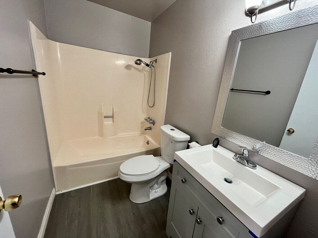 Upstairs condo includes: Laminate floors. Large living room and bedrooms. Master bedroom and bath with double closets. Private balcony. No neighbors above! One assigned parking space in covered garage. Storage bin in garage area. Pet policy: Cat or a small dog considered. Condo complex offers: Swimming pool. 2 Laundry rooms. Secured complex with gated parking.