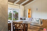 Originally designed by renowned architect Charles Du Bois, A.I.A., this iconic Woodland Hills residence has been completely reimagined and rebuilt into a true modern compound. Envisioned as the sellers' forever home (NOT A FLIP), more than $1.5 million was invested to reconstruct and elevate this Mid-Century masterpiece with uncompromising craftsmanship, cutting-edge technology, and the finest materials throughout. Beyond the striking architectural presence and custom double-gated entry, the property offers exceptional privacy and security, thoughtfully designed as an ultra-secure retreat. Nearly every system in the home is new including electrical, plumbing, sewer lines, roof (fully insulated), dual HVAC systems, tankless water heater with recirculating system, OWNED solar, and hardwired internet in every room. A Hydrawise fire-suppression roof sprinkler system, French drain system, dual camera systems (hardwired and WiFi), full alarm system, and comprehensive mesh WiFi coverage inside and out ensure safety, performance, and peace of mind at every level. Inside, the open-concept layout honors Du Bois' timeless design while seamlessly integrating modern luxury. The chef's kitchen is a showpiece, appointed with premium Taj Mahal Quartzite countertops, custom hardwood cabinetry, induction cooktop, double ovens, custom under-cabinet lighting, and top-tier appliances designed for both elevated entertaining and everyday living. Sonos audio flows throughout the home and backyard, creating a fully integrated lifestyle experience. The dramatic fireplace has been completely rebuilt with five imported Italian porcelain slabs and features an automatic fire starter, anchoring the main living space with warmth and architectural sophistication. Every bedroom has been thoughtfully reconfigured to connect directly to a bathroom, enhancing both comfort and functionality. The primary suite offers a spa-like retreat with heated floors, skylight, custom walk-in closet, and an architecturally curated bath. Outdoors, the private resort-style grounds rival luxury estates. The saltwater pool and spa offer a rare dual-function system transform the jacuzzi into a heated spa or a revitalizing cold plunge. A custom smart-controlled fire pit, outdoor bar and dining area, designer outdoor shower, and integrated sound system create the ultimate entertainer's setting. This is not simply a remodel it is a full-scale reinvention of a Charles Du Bois classic into a secure, technologically advanced, design-forward sanctuary. Located in one of Woodland Hills' most desirable enclaves near top-rated schools, premier shopping, and dining and just minutes to Calabasas and Westfield Topanga this is a rare opportunity to own a legacy architectural property rebuilt for the future. MLS# 26723763