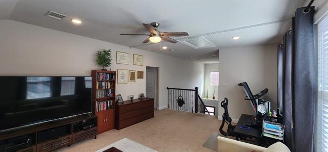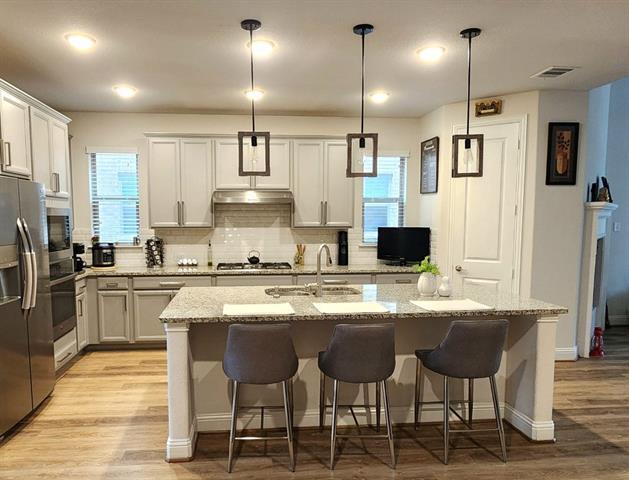 This Beautiful home offers a 3 bedrooms 2 full baths and a half bath with owners suite located downstairs with huge walking closet and oversized master bathroom, lots of storage space, huge medicine cabinet, there is a nice home office downstairs with build in cabinets, storage and full desk with lots of lighting located right next to the 1st floor half bath. The open concept kitchen, with stunning counters flowing through the dining space plus gathering space is ideal for entertaining, stainless steel appliances, refrigerator included, lots of kitchen cabinet space and lighting. The two car garage offers storage space for the at home projects. Enjoy flexible loft space upstairs plus 2 great size bedrooms and an oversize full bath with double vanities, lots of linen and storage space. This home features Wood and NEW laminate floors all through the house plus complete new paint. Also features a large outdoor covered patio, great for gatherings or enjoying a nice coffee in the morning, Pets are allow case by case with a pet deposit. Come and see your new beautiful home today.