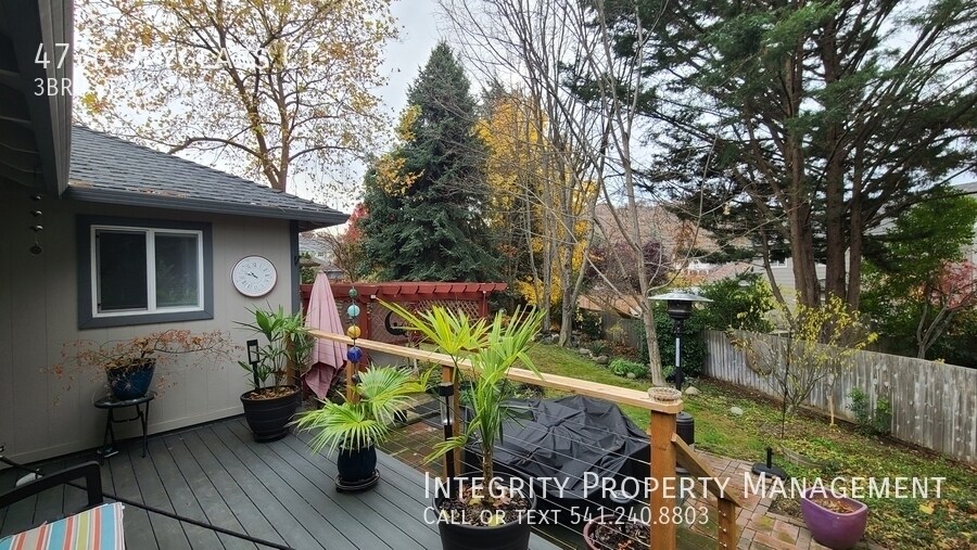 Welcome to this beautifully updated single-level home featuring an inviting open layout and thoughtful design touches throughout. The spacious kitchen boasts sleek quartz countertops, stainless steel appliances, a farmhouse sink, subway tile backsplash, and rich oak cabinetry—perfect for cooking and entertaining. The adjoining living room offers a cozy brick fireplace with a mounted TV and a stylish ceiling fan, creating a comfortable space to relax. The bathroom is tastefully updated with modern lighting, a large mirror, and a glass shower enclosure. Enjoy outdoor living on the private deck overlooking a landscaped backyard with mature trees, potted plants, and a pergola for shade. Additional highlights include wood-look LVP flooring throughout, a two-car garage, and great curb appeal with a covered front porch. Conveniently located in a quiet neighborhood close to schools, parks, and shopping—this home has it all! Frequently Asked Questions: STATUS: Available Now PET RESTRICTIONS: 1 small dog, less than 25 lbs. Additional security deposit $500 required, monthly pet fee $40/mo. SMOKING: No smoking, no vaping, no marijuana INCOME REQUIREMENT: Gross 3 times monthly rent CREDIT REQUIREMENT: At least 600. MOVE-IN COSTS: First Month Pro-rated, Security Deposit $3300 DEPOSIT TO HOLD: $500 upon approval, holds up to 7 days. SHOWING INSTRUCTIONS: Schedule Online: APPLICATION INSTRUCTIONS (HOW TO APPLY): Apply online. All complete applications are processed as they are received. First approved applicant to submit $500 deposit gets unit. Go to If applying with a Pet or Assistance Animal, complete profile at HOUSING ASSISTANCE: Income must meet 3x the amount of tenant portion, plus utilities. More Information: • Property Description Details • AREA INFORMATION: Located in west Grants Pass off M Street near Dollar General FLOORING: LVP GARAGE/PARKING : 2 car garage plus driveway parking KITCHEN APPLIANCES INCLUDED: Fridge, oven/stove, microwave, dishwasher LAUNDRY APPLIANCES INCLUDED: Washer/Dryer HEATING/COOLING: Central Heat and Air PROPERTY TYPE: Single Family Dwelling UTILITIES INCLUDED: Trash. Tenant responsible for power, gas, water, sewer. YEAR BUILT: 1993 YARD: Lawn, mature landscaping, landscape maintenance included • Application, Lease Terms, and Fees • *ADDITIONAL FEES NOT INCLUDED IN RENT: APPLICATION FEE: $55 PET FEE: $40 per pet PET SCREENING FEE: $30 per pet RENTER'S INSURANCE: Required unless exempt by ORS 90.222 APPLICATION TURNAROUND TIME: 2-3 business days LEASE DURATION: 12 months • HOA Instructions • HOA rules and regulations may apply *All information is deemed reliable but not guaranteed and is subject to change.* All Integrity Property Management residents have the exciting opportunity to enroll in the Resident Benefits Package (RBP)! For just $39.95/month residents can enjoy exclusive benefits including HVAC Quarterly Filter Deliveries, comprehensive renter's insurance coverage, credit building to boost their credit score with timely rent payments, up to $1M in Identity Theft Protection, our top-notch resident rewards program, and much more! Residents can enhance their RBP by adding on-demand pest control for an additional $14/month.