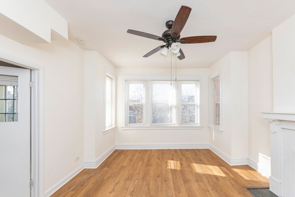 Rare opportunity to rent a penthouse 3BR/1BA plus enclosed sunroom with a shared backyard in a stunning vintage rehabbed building! This home is located in Albany Park and just steps away from the Brown Line Stop. The property boasts access to a host of stellar restaurants, bars, and cultural experiences! The separate living and dining areas have large windows that let in a ton of natural light! The kitchen is optimal for entertaining & flows perfectly into your living or dining space. The 3 bedrooms are spacious featuring tons of closet space and one bedroom has a private deck. Easy street parking! Make this your home today!
