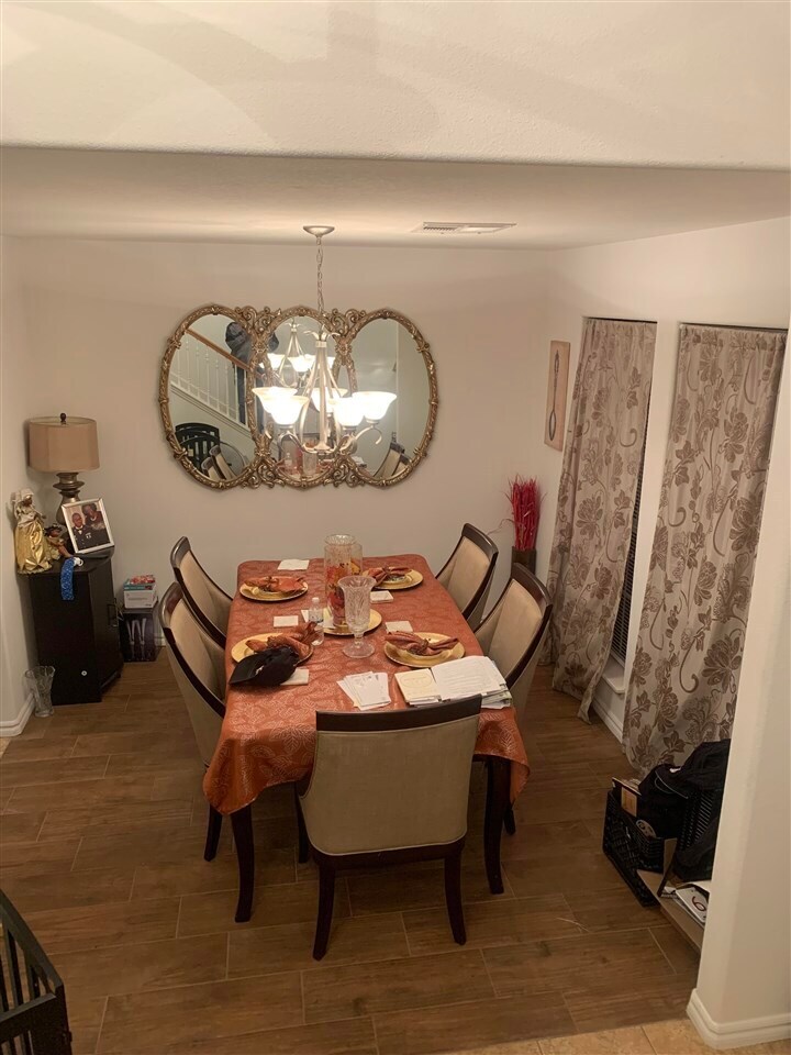 The property is a gorgeous two-story home featuring four bedrooms, two and a half bathrooms, and a two-car garage. It includes a fireplace, washer and dryer hookups, formal dining room, and central heat and air conditioning.
