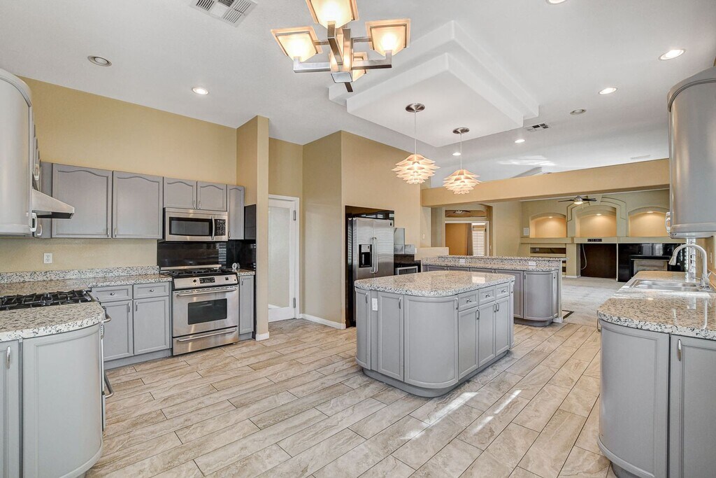 Welcome to 4737 Stavanger, a luxurious, 4,412 sq ft, 5-bedroom, 4.5-bathroom home located in the prestigious Granada Hills HOA Guard-Gated Community in Las Vegas, NV. This stunning property features a pool and spa for ultimate relaxation, along with 3 fireplaces to cozy up to on chilly evenings. The chef's kitchen boasts dual ranges and granite countertops, perfect for preparing gourmet meals. With 3 master suites, each with its own en-suite bathroom, this home offers plenty of space and privacy. Enjoy the peace of mind that comes with living in a secure guard-gated community. Don't miss out on the opportunity to make this pet-friendly oasis your new home. Contact Maggie at or John at to schedule a showing today!