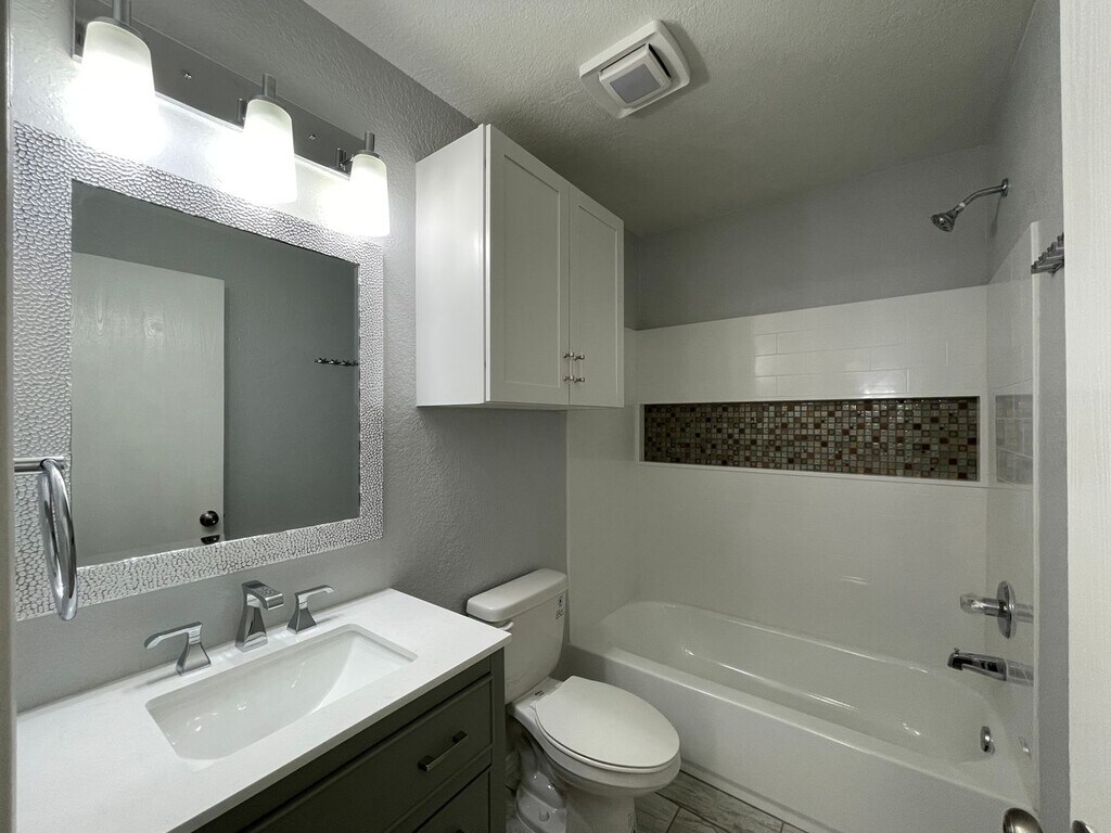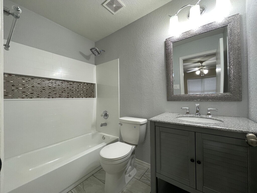 Single family home for rent in northeast San Antonio. Home offers three bedrooms with carpet, 2 fully updated bathrooms and vinyl wood flooring throughout the rest of the home. Kitchen includes range/stove, oven, microwave, dishwasher and fridge. Backyard includes a private shed for tenancy use, a covered patio and spacious grass area. A double wide driveway is offered for parking. Washer and dryer connections are available in the utility/laundry room. $25 extra will be added to the rent for an HVAC filter delivery program which is mandatory with properties we manage.