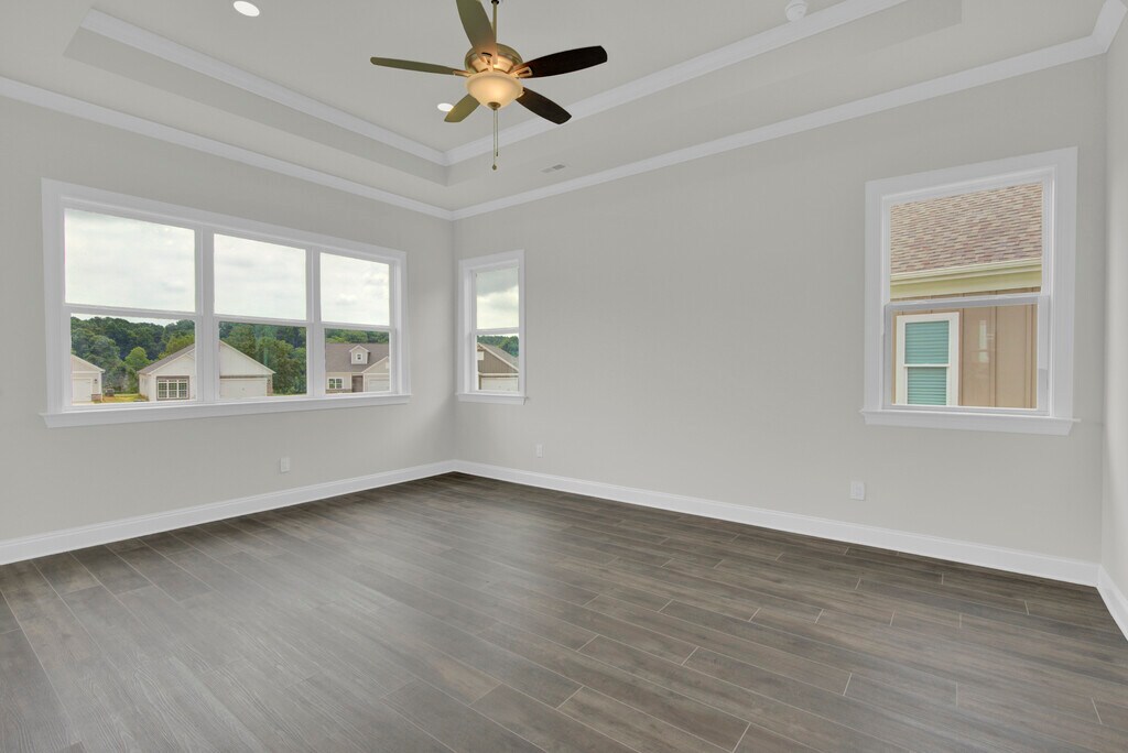Spacious new construction home! 10' ceilings throughout main level. Open concept floor plan. Kitchen features walk-in pantry, oversized island and plenty of storage. Living room with tray ceiling and ceiling fan. Primary suite is located on the main level with a tray ceiling and access to spacious bath with walk-in shower. Generous walk-in closet with access to the laundry room. Upstairs has two bedrooms as well as a flex space great for storage or a play room. Lawn Maintenance included! Convenient to shopping and restaurants. Wonderful opportunity to be the first to enjoy this brand new home.