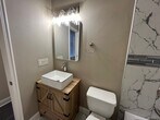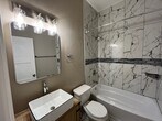 This 2nd floor unit has a private entrance behind the building on Essex Way. It has hardwood floors, central AC, and ceiling fans. The kitchen has a large opening to the living room and features granite counters, subway tile backsplash, custom cabinets, track lighting, garbage disposal, and stainless-steel appliances including dishwasher, built in microwave, gas stove, and 4 door French door refrigerator. The bedroom has a walk in closet and there's a coat closet in the living room. The bathroom has a bathtub with inlaid tile surround, vanity with basin sink, and tile floor. There's internal access to private laundry and extra storage in the basement. Two assigned parking spaces are included in rent. Landlord pays water, sewage, and trash. Tenant pays gas & electric. This duplex has a front unit at 361 Cedarville Street and a rear unit at 4739 Essex Way in Bloomfield.