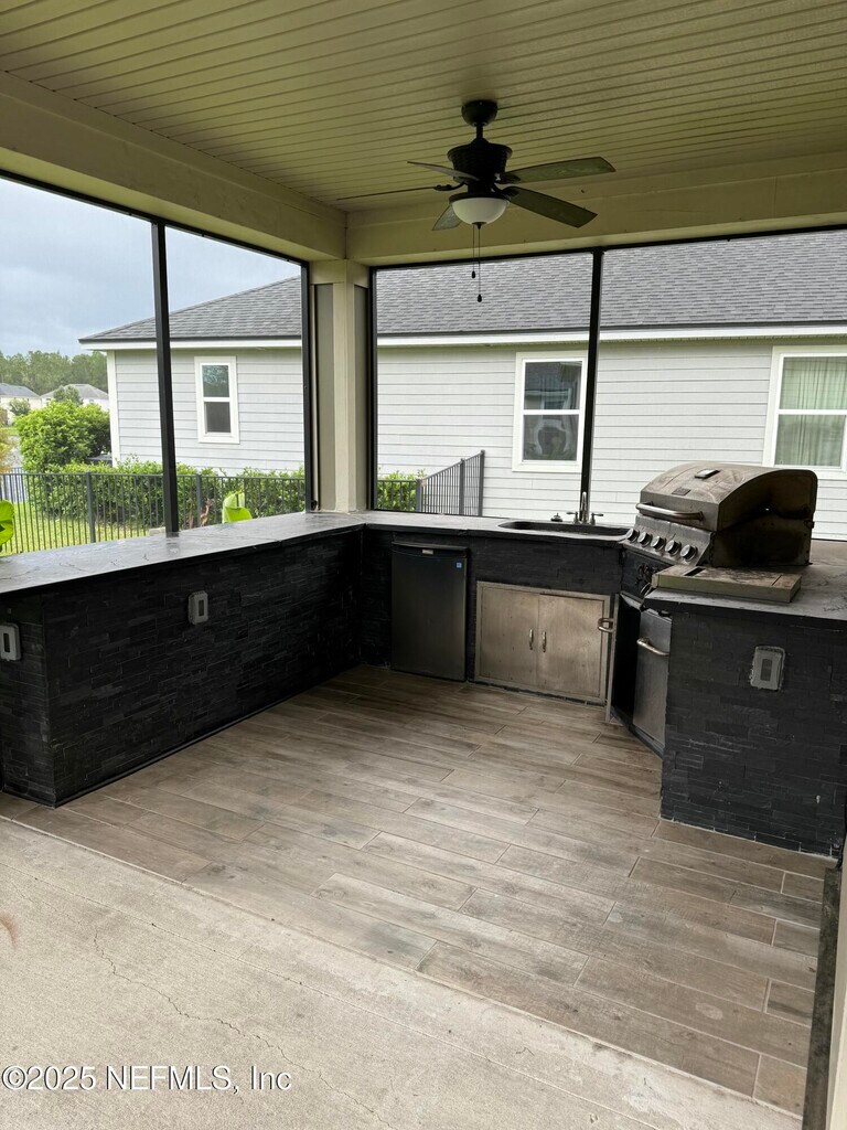 Located in the highly sought-after Beacon Lake community,stunning 4 bdr,3.5-br home offers an ideal blend of luxury & comfort. A bright & airy open floor plan boasts high ceilings,designer finishes,& a spacious layout perfect for modern living. The gourmet kitchen is a chef's dream,complete with stainless steel appliances,granite countertops,a generous island,and ample cabinet space. The owner's suite serves as a serene retreat with a spa-inspired bathroom featuring a large walk-in shower,dual vanities,& plenty of storage. The remaining bedrooms are well-sized & versatile,offering ideal spaces for family,guests,or work-from-home needs. Step outside to the expansive screened lanai & enjoy a fully equipped outdoor kitchen,perfect for entertaining or relaxing in the Florida sunshine. This home is part of the Beacon Lake community,which offers resort-style amenities,including a lakefront clubhouse,pool,fitness center,& scenic walking trail Available for occupancy now