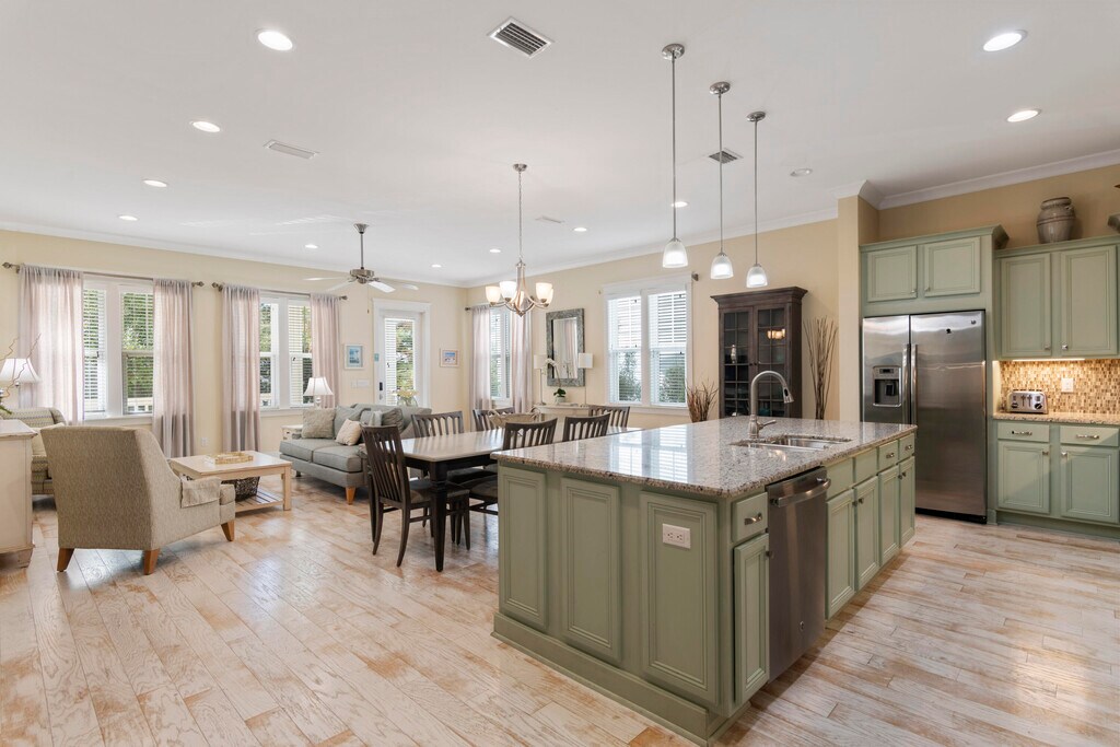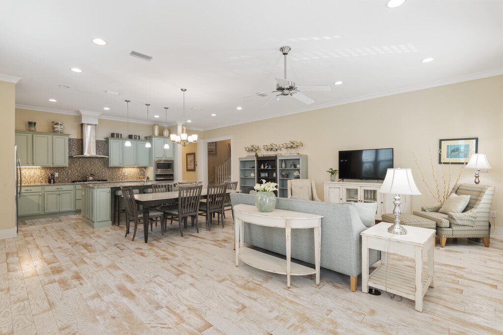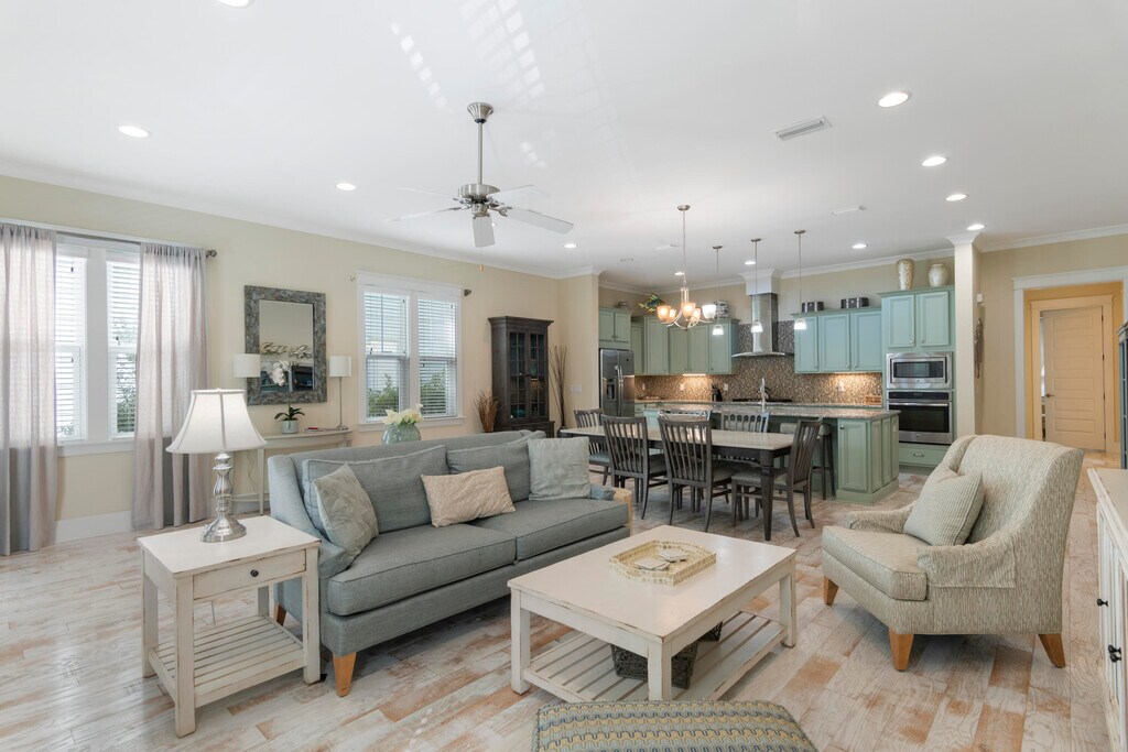 Discover coastal luxury and modern charm at this stunning 4-bedroom, 4.5-bathroom home in the coveted Highland Parks neighborhood of Blue Mountain Beach. Just steps from 30A, this spacious retreat boasts an oversized, open-concept living and kitchen area, perfect for entertaining. The chef's kitchen shines with a large island, updated finishes, and ample natural light, creating a welcoming hub for family and friends.