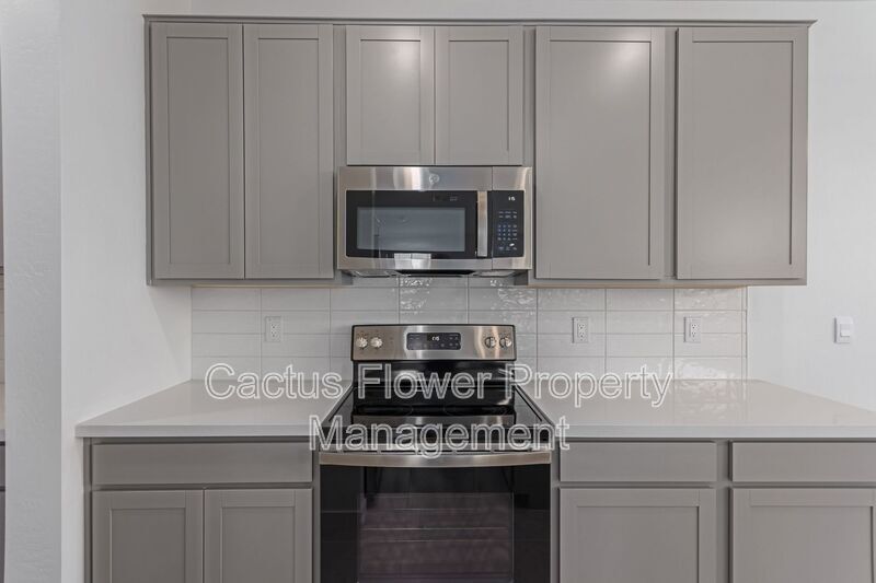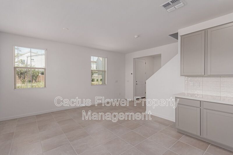 Discover this pristine single-family home in the highly desirable Eastmark community in Mesa. Ideally located just 3 minutes from Basis Mesa, 2 minutes from Eastmark High School, 6 minutes from Dignity Health, and 12 minutes from Costco, this beautiful 3-bedroom, 2-bathroom home with a 2-car garage offers a modern split floor plan tailored for contemporary living. The open-concept design is perfect for both family time and entertaining guests. With 9-foot ceilings and abundant natural light, the home feels bright and spacious. The kitchen is a chef's delight, featuring granite countertops, stainless steel appliances, and a large walk-in pantry, ensuring plenty of storage. The master suite is well-appointed with double sinks and ample storage space. A washer and dryer are conveniently located on the second floor. The backyard is designed for easy maintenance, with an extended patio and artificial grass, making it ideal for outdoor gatherings. The front yard is managed by the HOA, providing additional ease of living. Residents can enjoy the exceptional amenities within this vibrant community, including 77 parks, a resort-style pool, a clubhouse, the famous orange monster play area, a skatepark, splash pad, various sports fields, disc golf, and future pickleball courts. Conveniently located near major highways, including the 24, 202, and US 60, this home offers easy access to shopping, dining, and entertainment. Amenities: 2 car garage