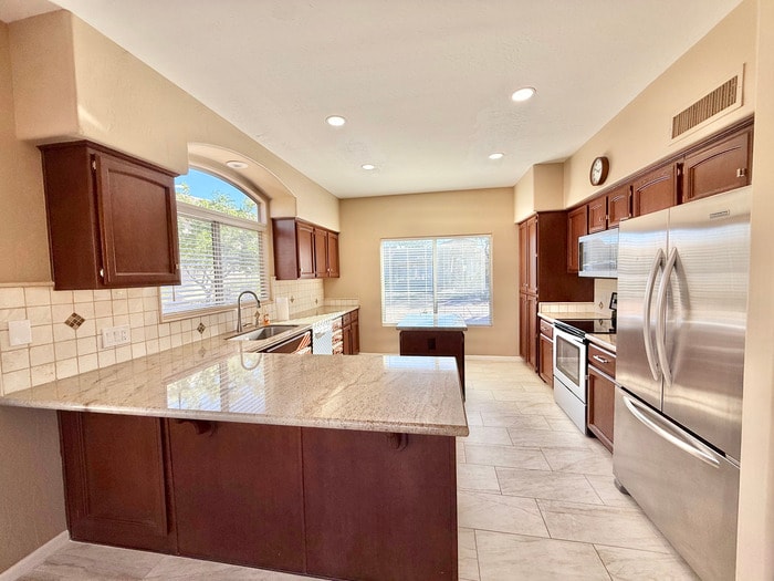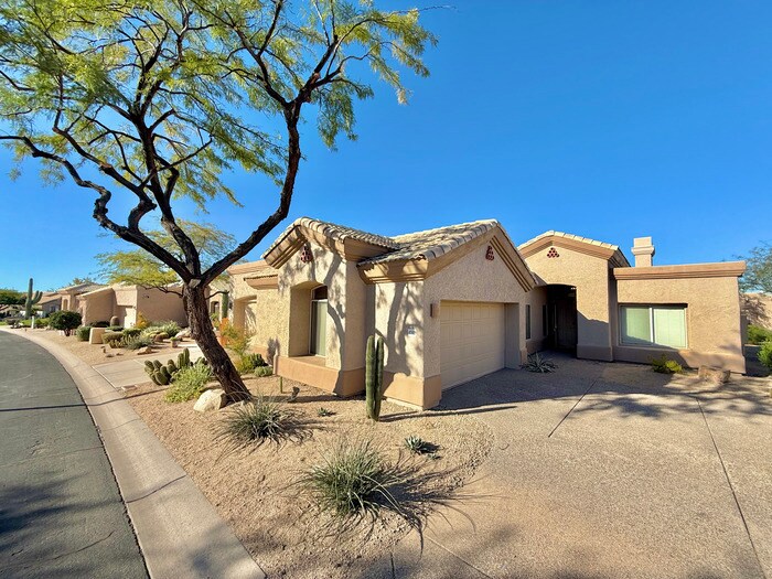 Discover this pristine patio home in the highly sought-after Tatum Village, perfect for both seasonal retreats and full-time residence. Featuring a versatile DEN/OFFICE with double doors, this space can easily serve as a guest room. Enjoy the benefits of newer paint and a beautifully updated kitchen equipped with modern appliances. The property boasts an attractive aggregate driveway and access to a HEATED community POOL AND SPA, complemented by scenic walking paths. For those who enjoy sports, the community offers tennis courts that are also striped for pickleball. Located in a prime area, you'll find yourself just moments away from shopping, Desert Ridge, and major highways 101 and 303. Additionally, a membership is available for the Tatum Ranch community golf course, providing further recreational opportunities. Smoking: No Year Built: 1995 Deposits: $2,675.00 This property allows self guided viewing without an appointment. Contact for details.