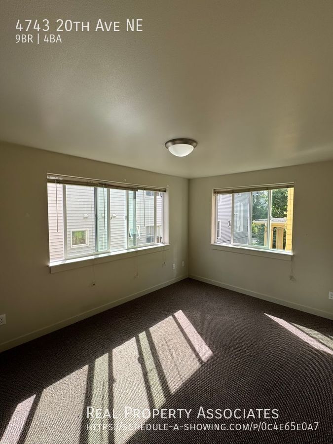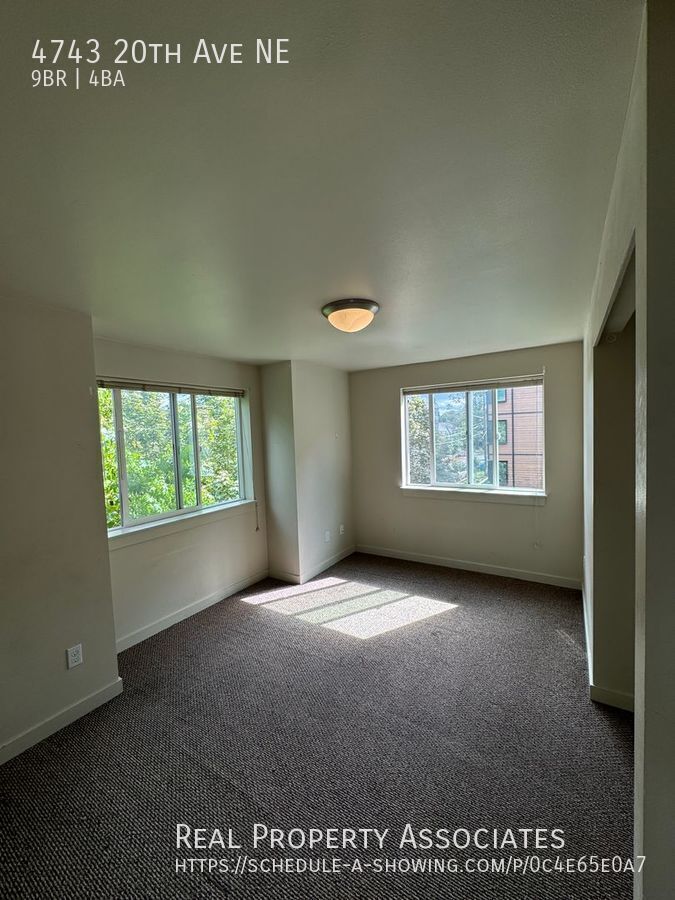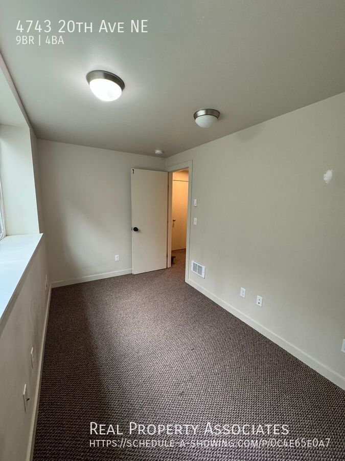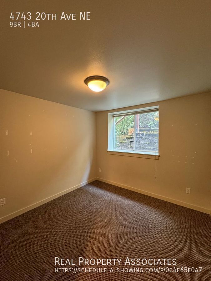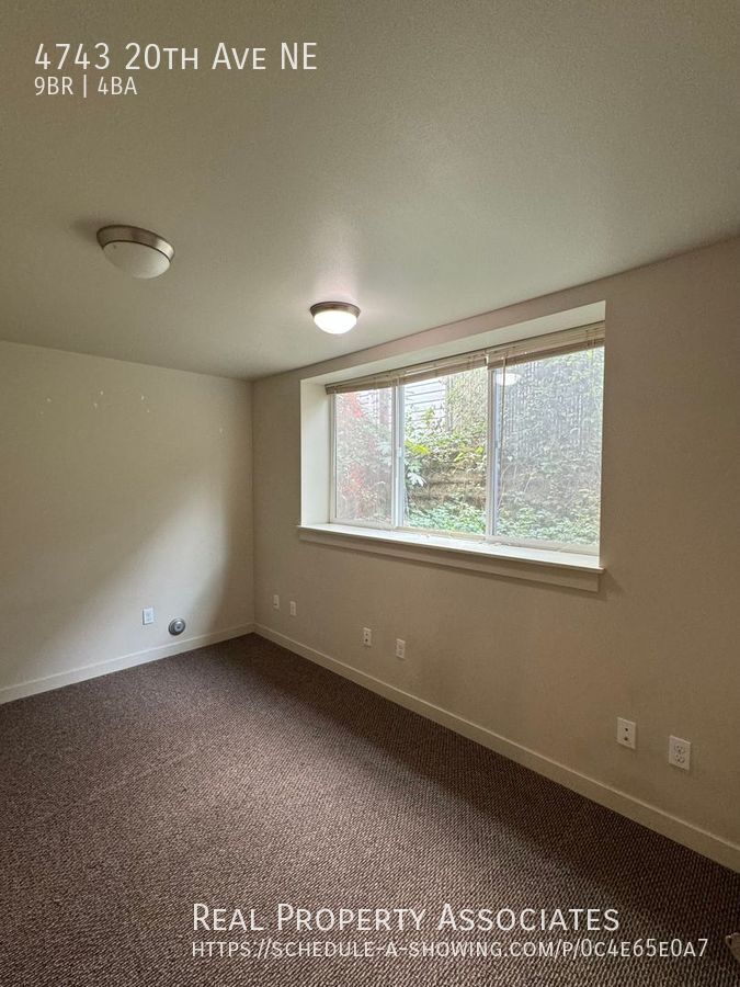Already rented for school year of 2025-26 Step into a charming 9-bedroom, 3.5-bathroom home located in the heart of Seattle’s bustling University District. Perfect for students and professionals, this home offers spacious living areas.. With an ideal location just 2 blocks from the University of Washington, this home provides easy access to shops, restaurants, and public transportation. Enjoy the convenience of a backyard for relaxing or entertaining. BASICS: Availability: 02/01/2025 through 8/30/2025 Lease Term: 12 Month Lease Application $45 per person/adult. Available Now, First & Deposit for qualified applicants. Refundable Security Deposit: One Month's Rent Pet Policy: No Pets Allowed Parking: Off-Street Parking *** TO SCHEDULE A SHOWING*** **Renter's legal liability insurance is required and part of the Benefit Package ($30 monthly). If qualifying legal liability insurance is purchased by the tenant separately and proved, the Benefit package is reduced to $15 monthly. Professionally managed by: Real Property Associates, Inc. Please contact for more information. **Applicant Criteria - ***Please visit our company site at for accurate information regarding unit pricing and availability