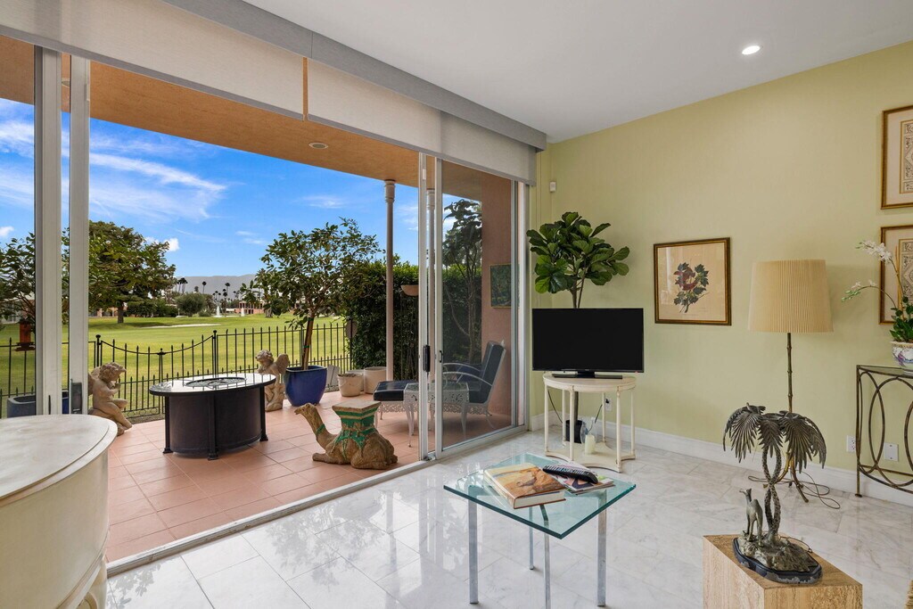 Available May 1,2025-May 1,2026. Turn-key furnished. Beautifully remodeled 3 BD-3B with magnificent golf course/club house and mountain views. Featuring 2 patios to enjoy the fabulous outdoors in the winter months: Private south facing extra large front courtyard and back patio on the golf course with one of the best views in the Country Club looking down the Fairway at the newly remodeled Club House. Interior finishes include marble floors,remodeled bathrooms and cabinetry,stunning furnishings,baby grand piano,fireplace,10 ft. ceilings throughout. All 3 Bedrooms have access to one of the patios. The Primary Suite enjoys the awesome golf course views; the Jr. Suite and 3rd bedroom have direct access to the So. facing front courtyard. Golf cart is included for tenant use. Community pool directly across the street. Marrakesh offers 18-hole executive course with a very active social lifestyle. Tenant privileges with the newly remodeled Country Club are available at additional fees: Social membership is $500 a month; Golf Membership (includes unlimited golf and social privileges) at $1800 a month.