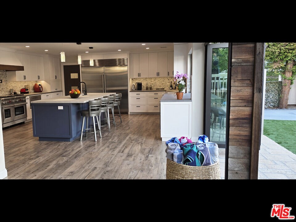 Discover the perfect balance of history, luxury, and modern family comfort in this truly exceptional unfurnished, 5BD / 5BA, 3,216 sq ft residence on a sprawling 14,000 sq ft lot. Originally the 1920 John Haskell Farmhouse, the property has been thoughtfully transformed with a Modern Farmhouse Chic aesthetic, creating a secure, private compound ideal for refined living and effortless entertaining. Inside, the inviting Primary Suite features a custom large closet and a spa-like bathroom with a dual-sink vanity and an oversized soaking tub. A separate spacious downstairs guest suite offers its own full bath and closet, while three additional bedrooms upstairs provide flexibility for family, guests, or office use. The heart of the home is the gourmet kitchen, equipped with a Wolf double oven, Sub-Zero freezer and refrigerator, and an impressive 10-ft island, perfect for casual meals, homework sessions, or gathering with friends. A formal dining room easily accommodates larger dinner parties and special occasions. Outdoor living shines with an expansive front lawn ideal for children and pets and a spacious backyard retreat featuring a 35' x 35' heated Baja step pool, a Viking BBQ with mini-fridge, and a fire-pit lounge area. Includes a dedicated pool bathroom with shower for convenience. The property is Smart Home and is fully secured with a gated driveway, keyless entry system, monitored alarm, and exterior security cameras. Additional highlights include driveway parking for six cars, Tesla charger, and a one-car enclosed garage with remote entry. Located just minutes from K-8 Hesby Oaks Charter School, local restaurants, and shopping, with easy access to the 101 and 405 freeways. MLS# 25623827