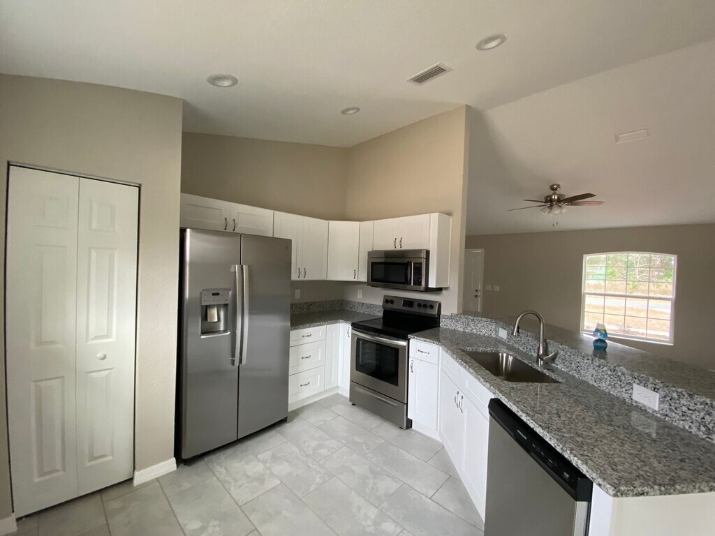 Live in this Beautiful Home in a desirable SW Ocala neighborhood. Home offers a spacious split plan with cathedral ceilings in the living room and kitchen. Kitchen design features, stainless appliances with stunning granite countertops to complement the upgraded wood cabinetry featuring self-closing drawers and doors! You will enjoy entertaining in this kitchen with its eight foot serving counter and sliding door leading to attached screen enclosed lanai! Master bedroom is spacious and features walk in closet with a custom tiled master bath and wood cabinetry with granite counters! All wet areas are tiled in 18x18 ceramic tile with carpeted living areas. Two car garage boasts painted interior, epoxy flooring. To schedule a Showing or Submit an Application please visit: . All RPM Diversified residents are enrolled in the Resident Benefits Package (RBP) for $39.95/month which includes renters insurance, credit building to help boost your credit score with timely rent payments, $1M Identity Protection, HVAC air filter delivery (for applicable properties), move-in concierge service making utility connection and home service setup a breeze during your move-in, our best-in-class resident rewards program, and much more! More details upon application. Non-Smoking Home. Renter's Insurance is required! First and Security required to Move-In Our property offers deposit-free leasing using Obligo billing authorization technology (for qualified renters). Available with no security deposit with Obligo! There are restrictions on pets, if pets are allowed, there will be additional fees required. By applying to lease with Real Property Management Diversified you will have to create either a pet/animal profile or a no-pet profile using our firm’s third-party screening service. Click here to start.