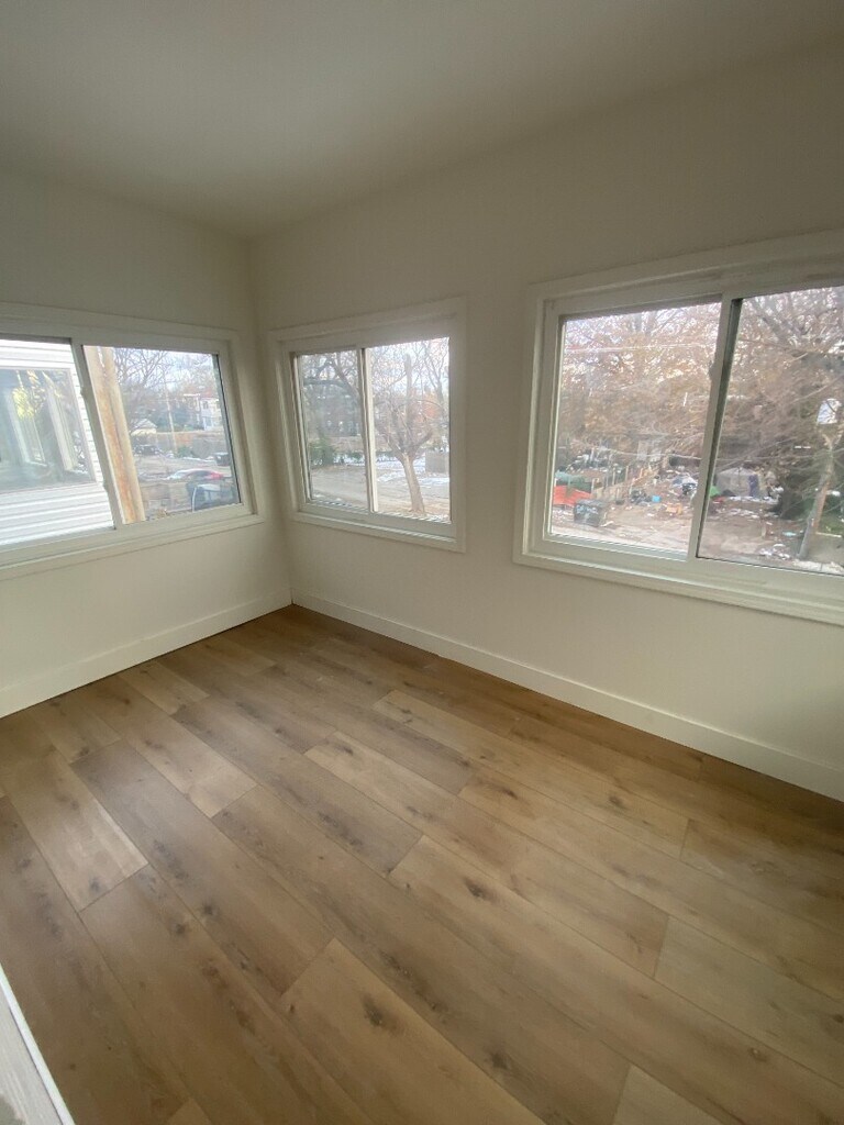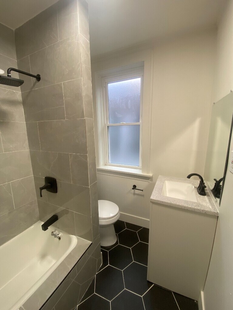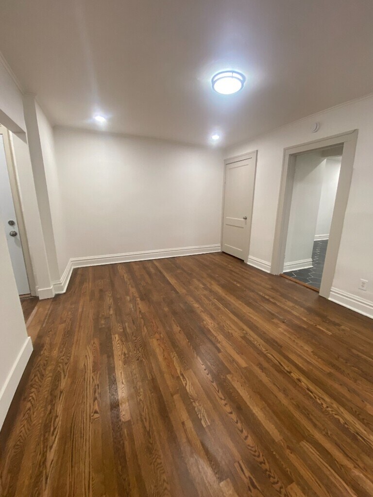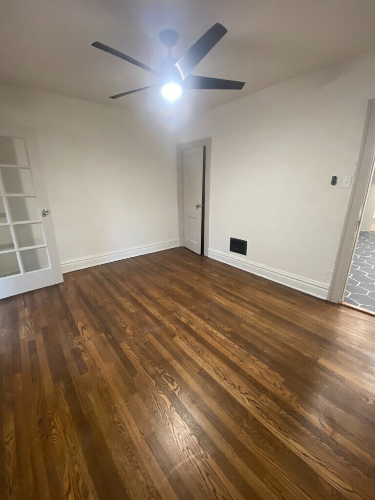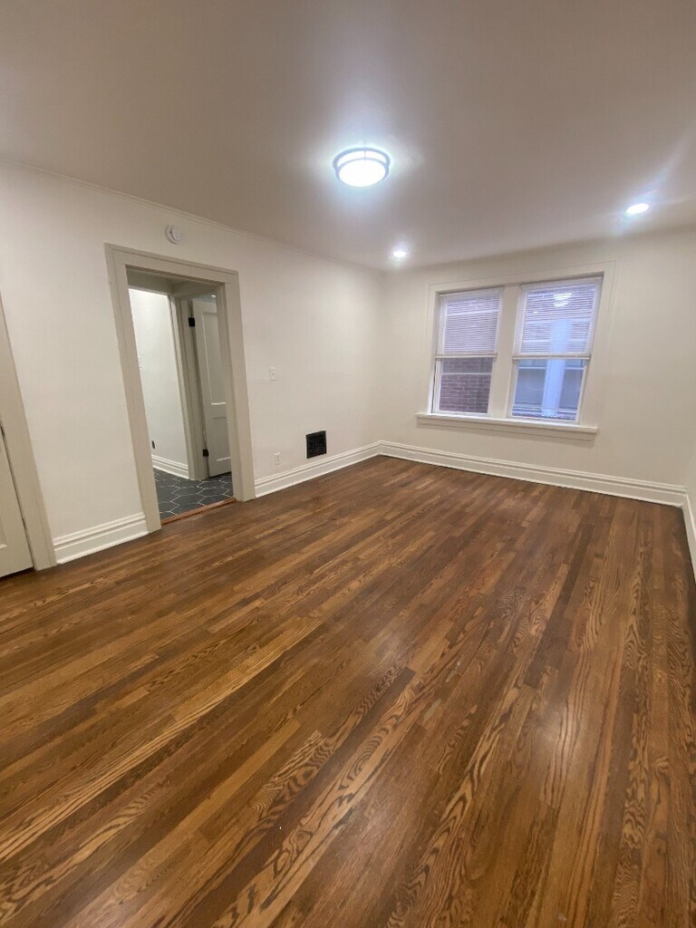 This freshly refinished 2-bedroom, 1-bath apartment offers modern comfort with classic charm. The home features a fully updated interior, including a tiled kitchen equipped with stainless steel appliances, ample cabinet space, and a clean, contemporary feel. Enjoy refinished hardwood floors throughout the living and bedroom areas, bringing warmth and character to the space. Both bedrooms are well-sized with good natural light, and the bathroom has been updated for a bright, clean look. An added bonus: a private parking pad located in the back, providing convenient off-street parking. Perfect for anyone seeking a move-in-ready home with thoughtful upgrades and great everyday functionality. $65 monthly utility charge for water, sewer, and trash $250 pet deposit / $45 monthly pet fee
