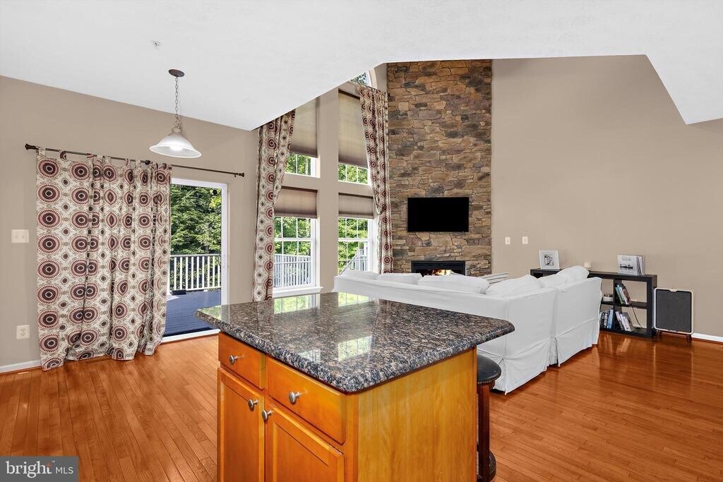 Beautiful townhome available for rent in Aberdeen! This property offers soaring ceilings, a striking two-story stone fireplace, and hardwood floors throughout the main level. The updated kitchen features granite countertops, a center island, and brand-new stainless steel appliances, with sliders opening to a TREX deck. There is a large two car garage with custom flake flooring and plenty of storage. Upstairs includes three bedrooms, two full baths, laundry area, and an open view to the main living space. The finished lower level is perfect for entertaining with a wet bar, wine fridge, full bath, and access to a large paved patio with fire pit. Backed by peaceful woods and steps from the Seven Trails path, this home offers style, space, and location in one stunning package.