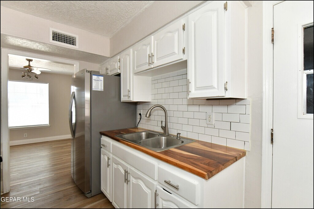Bright interiors and practical design make this Northeast El Paso duplex a comfortable place to call home. The living area welcomes natural light and features durable tile flooring that creates a clean and easy-care environment. The kitchen provides generous cabinet storage and efficient workspace that supports everyday cooking while staying connected to the nearby dining area. Two comfortable bedrooms offer flexibility for sleeping arrangements,a home office,or creative space. A full bathroom and washer and dryer hookups provide added convenience for daily routines. Outside,a private yard area offers a relaxing outdoor setting with room to enjoy fresh air without extensive maintenance. Conveniently located near major commuter routes including US-54 and Loop 375 with quick access to Fort Bliss,shopping centers,restaurants,and neighborhood parks throughout Northeast El Paso. Deposit-Free Renting service to Obligo qualified renters,fees may apply.'' with ''Single Family/Detached