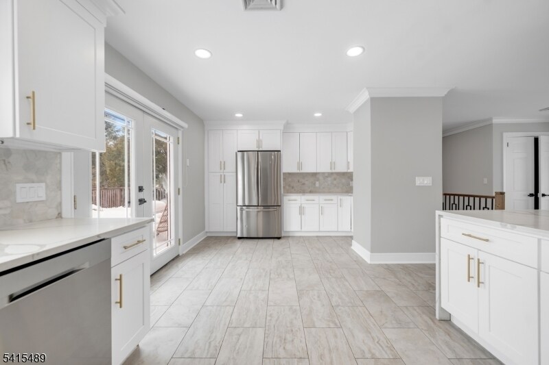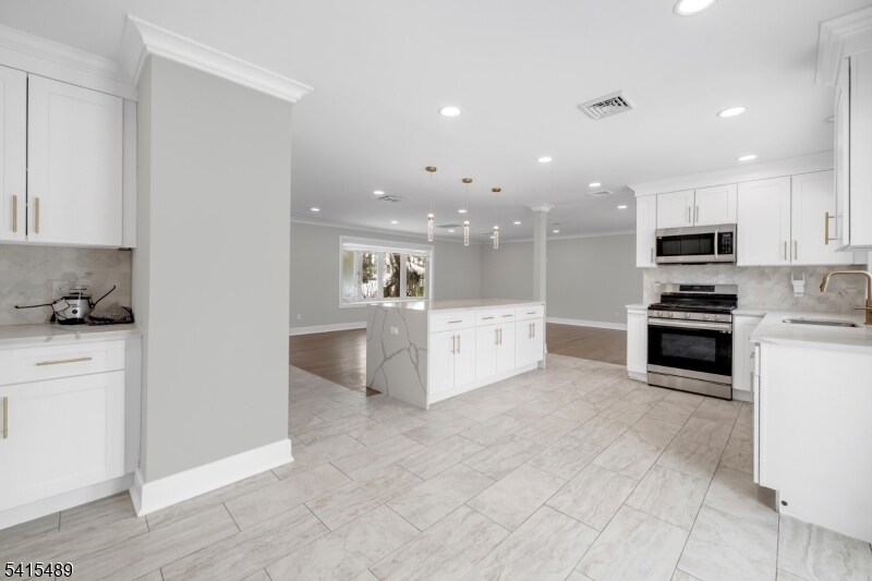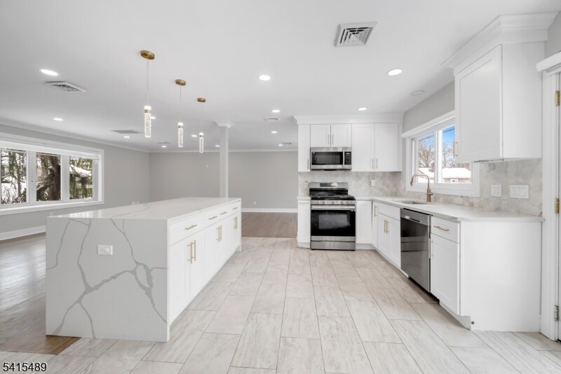 Totally renovated and spacious ranch-style single family home for rent in the heart of Paramus, set on a quiet, tree-lined street. This beautifully updated home features a bright, open-concept layout with a large living room, dining area, and stunning kitchen that seamlessly flow together, ideal for both everyday living and entertaining. The kitchen offers quartz countertops, a large center island, stainless steel appliances, and abundant cabinetry. The main floor includes 3 bedrooms and 2 full bathrooms, including a primary suite with a private en-suite bath. The fully finished walk-out lower level provides exceptional additional living space with a fourth bedroom, bonus room, recreation room, third full bathroom, laundry area, and access to the attached 2-car garage. A large driveway accommodates multiple vehicles with ease. Tenant is responsible for gas, electric, heat, water, snow removal, and landscaping. Credit check and proof of income required.