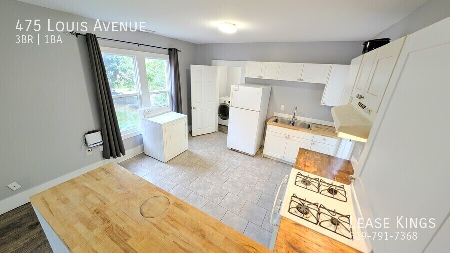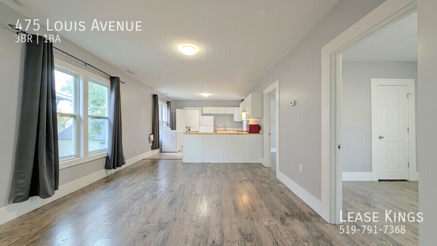 Looking for a spacious and well-located rental in Windsor? This lovely 3-bedroom, 1-bathroom unit at 475 Louis Avenue offers comfortable living with convenient features, perfect for families or roommates! Key Features: Three Bright Bedrooms: Ample space for privacy, rest, or setting up a home office. One bedroom features charming bay windows, filling the space with natural light. Large Kitchen & Dining Room: A generous 401 sq. ft. open area for cooking and dining, featuring white cabinetry, wood-look countertops, and essential appliances including a fridge, stove, and microwave. Dedicated Living Room: A separate and cozy 198 sq. ft. living space provides an ideal spot for relaxation and entertaining. In-Unit Laundry: Enjoy the convenience of a dedicated laundry area (60 sq. ft.) right within your unit. Bright & Airy: Large windows throughout the unit ensure plenty of natural light, complementing the modern flooring and neutral wall tones. Charming Exterior: The house boasts an attractive dark siding with white trim and a welcoming covered front porch, adding to its curb appeal. Prime Location: Situated on Louis Avenue, offering easy access to [mention a nearby school, park, downtown, or major transit route if known, e.g., the University of Windsor, Downtown attractions, or major bus routes]. This unit is a fantastic opportunity for comfortable and convenient living in a vibrant Windsor neighborhood. Rent: $1800/month plus utilities Availability: NOW! Don't miss out on this fantastic opportunity! Contact us today to schedule your private viewing and learn more.