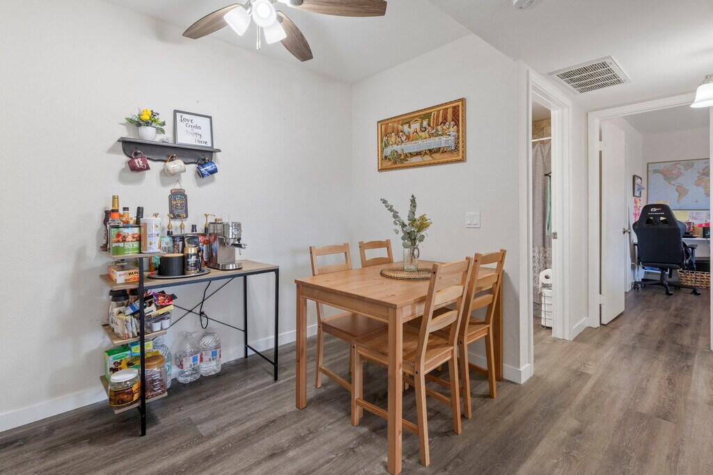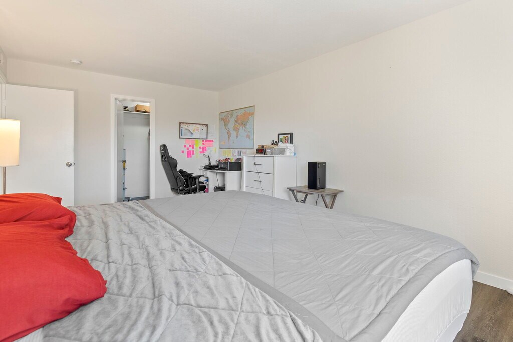 Welcome to this well-maintained ground-floor condo located in the highly desirable gated community of Midway North in Escondido. This charming residence features neutral paint, durable laminate flooring throughout, and an open floorplan that is flooded with natural light thanks to large windows. The beautifully appointed kitchen boasts stainless steel appliances, crisp white cabinetry, and a convenient breakfast counter that opens to the living area, perfect for entertaining. The spacious primary bedroom offers a walk-in closet for ample storage with laundry hook up inside the unit capable for a stackable washer and dryer. Otherwise, use the space for storage and use the community facility at your desire. Enjoy outdoor living on your private patio, ideal for relaxation or gatherings. Additional features include an assigned carport space for easy parking. The community offers fantastic amenities, including a sparkling pool, recreation area with BBQs, and more. Conveniently located just minutes from shopping, dining, parks, and easy access to Highway 78, this condo has everything you need. Don't miss out on this fantastic opportunity!