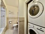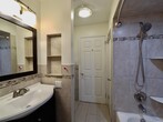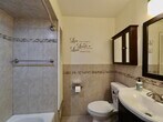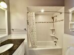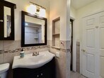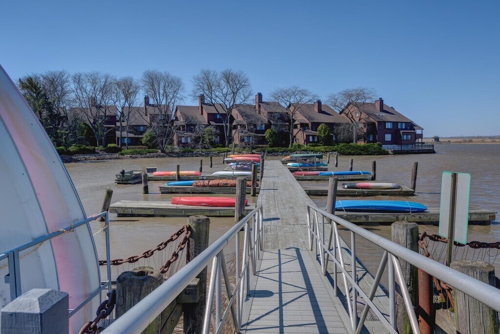 Renovated and spacious 2-bedroom, 2-bath simplex in Harmon Cove. The living room features high ceiling, a wood-burning fireplace, and a balcony overlooking the garden. The upgraded kitchen includes stainless steel appliances, and the dining room is conveniently located right off the kitchen. The bright primary bedroom offers a walk-in closet and a primary bath with an updated vanity. The large guest bedroom is complemented by an updated guest bath featuring a tub, custom-designed tiles and the laundry closet with both washer and dryer. Hardwood flooring, recessed lighting, and central heating and cooling. Enjoy one-floor living, ample storage, abundant sunlight, and a private storage room in the carport plus two covered parking spaces. Community amenities include 24-hour security, tennis/pickleball/basketball courts, a marina, pools, playground, jogging trails, and convenient access to buses, schools, the train, and NYC (NJ Transit Bus 129, 329). Rent includes amenities, parking, water, landscaping, snow removal, and garbage removal.
