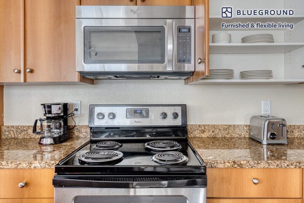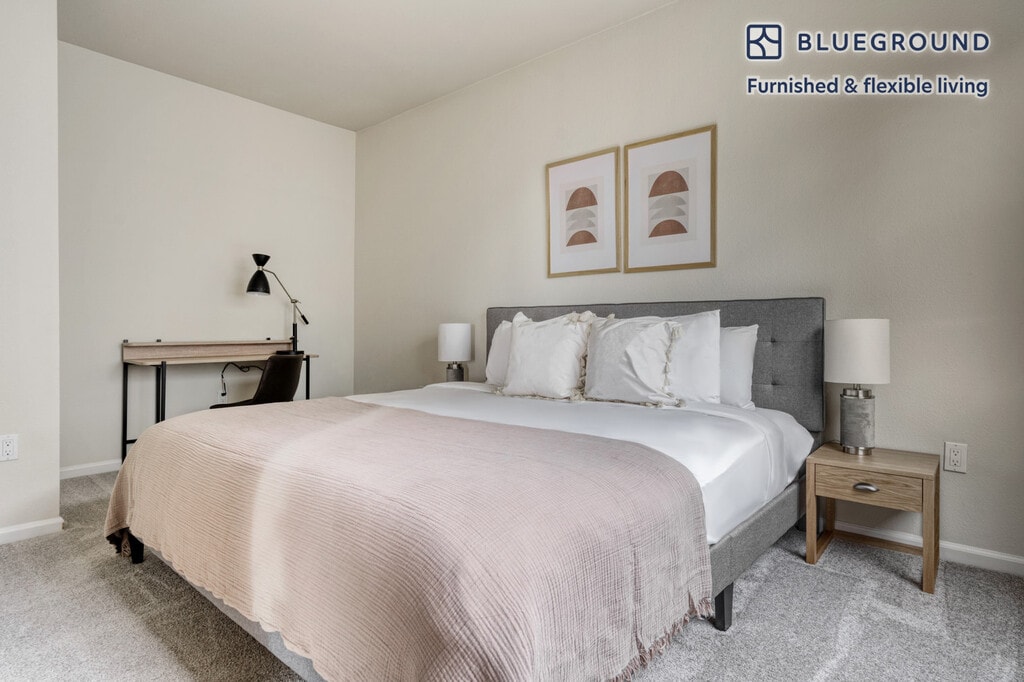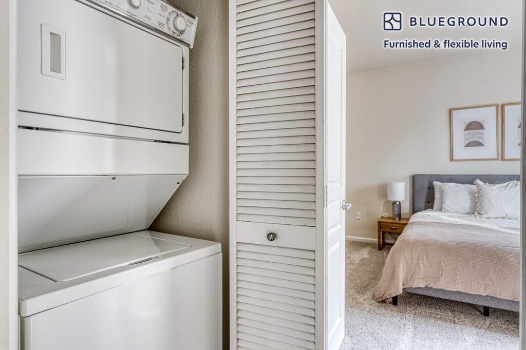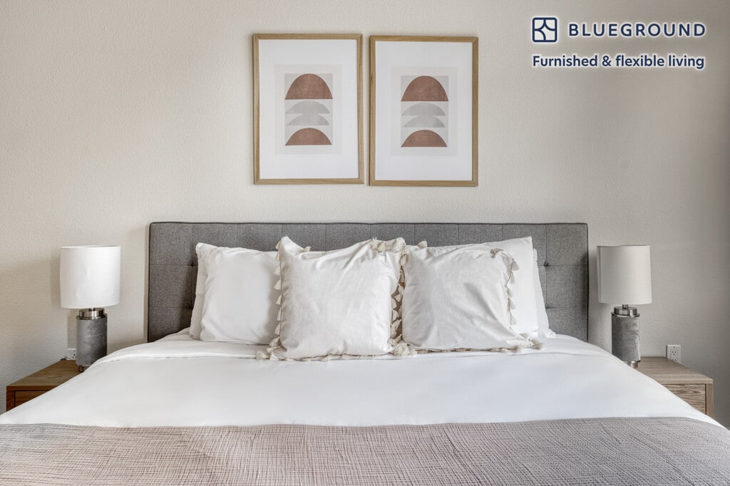 Discover the best of San Jose, with this one bedroom apartment in Auzerais - Josefa. It’ll be easy to simply show up and start living in this furnished apartment with its fully equipped kitchen, living room, and our dedicated, on-the-ground support. (ID #SFO766) The advertised rate of $2,970/month is the lowest available price, based on a 12 month(s) stay with a move-in date of July 1, 2026. Rates vary depending on the duration of stay, season, and other parameters. For exact pricing and additional pricing components, please visit our website and enter your desired move-in and move-out dates. The rate is applicable when billed upfront; it can be higher if billed in multiple payments. Brokers are welcome to reach out. Were you looking for an unfurnished lease? Try Blueground instead and upgrade from unfurnished to furnished living: - Furnished at rates comparable to unfurnished - No setup or furniture costs - save thousands - Move-in ready - save time, just bring your suitcase Designed with you in mind Thoughtfully designed with bespoke finishes, modern furnishings, and a fully equipped kitchen, you’ll enjoy that “I’m home” feeling with this Blueground apartment. Whether you’re lounging in your beautiful living room streaming the latest and greatest entertainment on the smart TV or premium wireless speaker, or getting some well-earned rest on the superior quality mattress with luxury linens, you’ll fall in love with everything this Auzerais - Josefa apartment has to offer. This apartment also offers in-apartment laundry. Sleeping arrangements King Bed, 70.8in/180cm Amenities Building amenities unique to this one bedroom apartment include an on-site: - BBQ Area - Dryer - Washing machine - Parking - Pets allowed Arrival and ongoing support The entire apartment is yours to enjoy! Throughout your stay, you’ll have access to our Client Experience team through the Blueground App. You can schedule additional cleanings, submit maintenance requests, and view our neighborhood recommendations with just a few taps. We’ll share all details upon confirmation of your stay. Other things to note Building amenities may have an extra cost. This Blueground apartment has flexible lease options, allowing you to book it for one month, a year, or more. Pets are welcome, though weight limits and breed restrictions apply and may incur fees. Parking is offered based on availability and is subject to a fee. Please keep in mind that this is a walk up building. We take great pride in ensuring every photo displayed is shot in our own units with our actual furnishings. That said, we regularly refresh our decor and furniture arrangement, which may differ from what’s pictured.