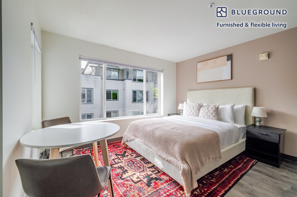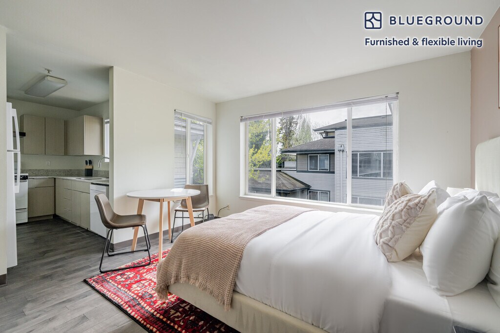 Discover the best of Seattle, with this studio apartment in University District. It’ll be easy to simply show up and start living in this furnished apartment with its fully equipped kitchen, living room, and our dedicated, on-the-ground support. (ID #SEA862) The advertised rate of $1,410/month is the lowest available price, based on a 1 month(s) and 3 day(s) stay with a move-in date of January 1, 2026. If you’re looking for a 1-year stay, the rate is $1,850/month. Rates vary depending on the duration of stay, season, and other parameters. For exact pricing and additional pricing components, please visit our website and enter your desired move-in and move-out dates. The rate is applicable when billed upfront; it can be higher if billed in multiple payments. Brokers are welcome to reach out. Were you looking for an unfurnished lease? Try Blueground instead and upgrade from unfurnished to furnished living: - Furnished at rates comparable to unfurnished - No setup or furniture costs - save thousands - Move-in ready - save time, just bring your suitcase Designed with you in mind Gorgeous furniture, fully equipped kitchen, smart TV, and a premium wireless speaker are just a few of the amenities you’ll find inside this studio apartment. Ideally located in Seattle, you’ll find a lot to love outside as well. When you’re ready to relax, you’ll be happy to discover every Blueground bedroom comes with superior quality mattresses, luxury linens, and cozy towels. We handle everything so you can simply show up and start living. Sleeping arrangements Queen Bed, 63in/160cm Amenities Building amenities unique to this studio apartment include an on-site: - Dryer in building - Elevator - Washing machine in building - Parking - Pets allowed Arrival and ongoing support The entire apartment is yours to enjoy! Throughout your stay, you’ll have access to our Client Experience team through the Blueground App. You can schedule additional cleanings, submit maintenance requests, and view our neighborhood recommendations with just a few taps. We’ll share all details upon confirmation of your stay. Ideally Located This furnished apartment is located in the University District (the U District), a relaxed area with casual hangouts. The University of Washington is located here and the large, leafy campus includes an art gallery and the Burke Museum of Natural History and Culture. The Husky Stadium draws in the city’s lovers of college football. The neighborhood’s main thoroughfare is University Way, better known as The Ave. All sorts of shops, cafes, and restaurants line the street, catering to students and young professionals. To access the rest of the city, simply hop on Seattle Metro Route 49. Other things to note Building amenities may have an extra cost. This Blueground apartment has flexible lease options, allowing you to book it for one month, a year, or more. Pets are welcome, though weight limits and breed restrictions apply and may incur fees. Parking is offered based on availability and is subject to a fee. We take great pride in ensuring every photo displayed is shot in our own units with our actual furnishings. That said, we regularly refresh our decor and furniture arrangement, which may differ from what’s pictured.