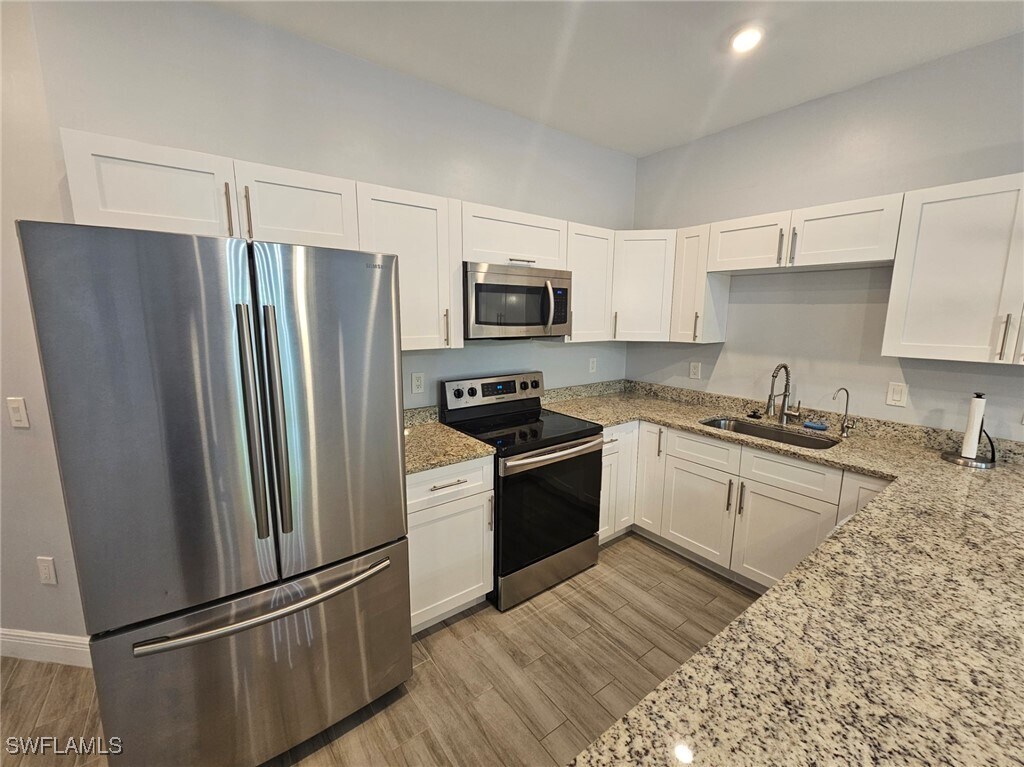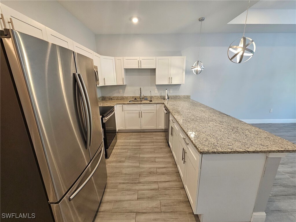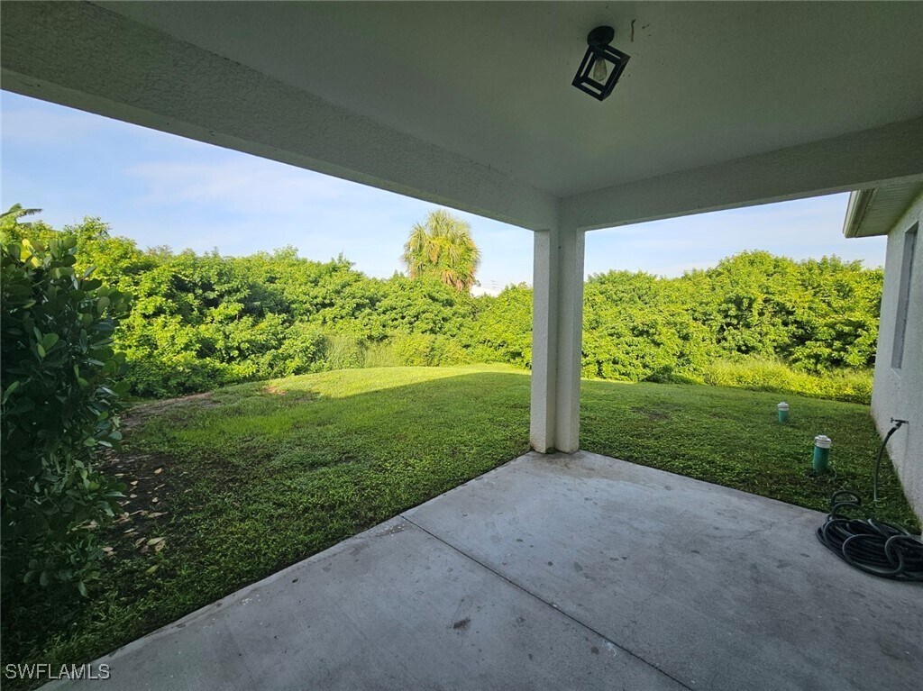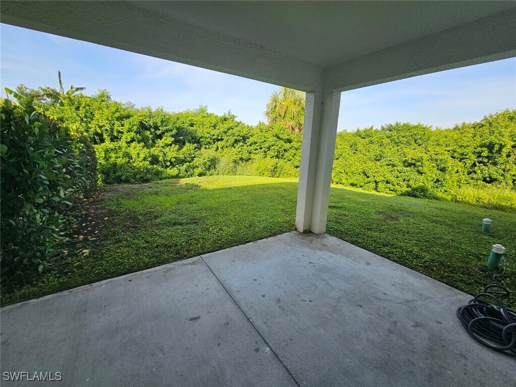 Gorgeous 3 bedroom/2 bathroom with attached 1 car garage duplex built in 2020 for rent in Lehigh Acres. Private yard,3 minutes from Daniels/SR82 intersection and 4 minutes from Colonial/SR82 intersection,10 minutes from I-75. Granite counter tops throughout,tile throughout,large kitchen peninsula,stainless-steel appliances in kitchen (including brand new dishwasher). Washer/dryer included in unit. Features include: rainfall shower heads,tray ceilings in great room and master bedroom,walk-in closet in master bedroom,modern LED lighting fixtures throughout,and smart garage door opener. Large private open-air lanai and back yard. Includes lawn care,water softener maintenance,quarterly pest control,and quarterly A/C replacement filter delivery.