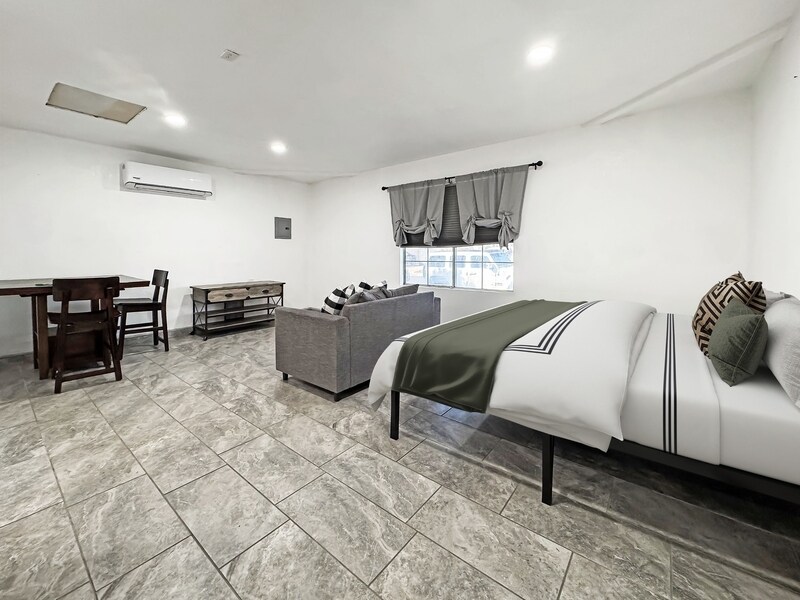Step inside to find a bright and airy open-concept living space featuring brand new flooring, fresh paint, and contemporary finishes throughout. The efficient kitchenette boasts sleek counter tops, ample cabinetry, and essential appliances for easy meal prep. The modern bathroom is tastefully updated with elegant fixtures and a spacious walk-in shower. Additional amenities include energy efficient mini split system that does heating and cooling, recessed lighting, and private in-unit laundry. This is a beautifully constructed Accessory Dwelling Unit (ADU), perfectly situated in a quiet single-family neighborhood in Indio, CA. The stylish and fully self-contained unit is attached to the main house yet offers its own private entrance, ensuring a seamless blend of convenience and privacy. Street parking is plentiful and at no additional cost. Can be offered partially furnished or unfurnished. Tenant pays their own electricity while water, gas and trash are included in the monthly rent. Will consider pets. Ideal applicants will meet or exceed the following Qualification Standards: verifiable gross household monthly income of 3X the monthly rent, minimum 650 credit score, no previous evictions. All income must be verifiable. Anyone over the age of 18 who intends to occupy the home full time will be required to submit a rental application, credit report, background and eviction history report. Schedule your viewing today!