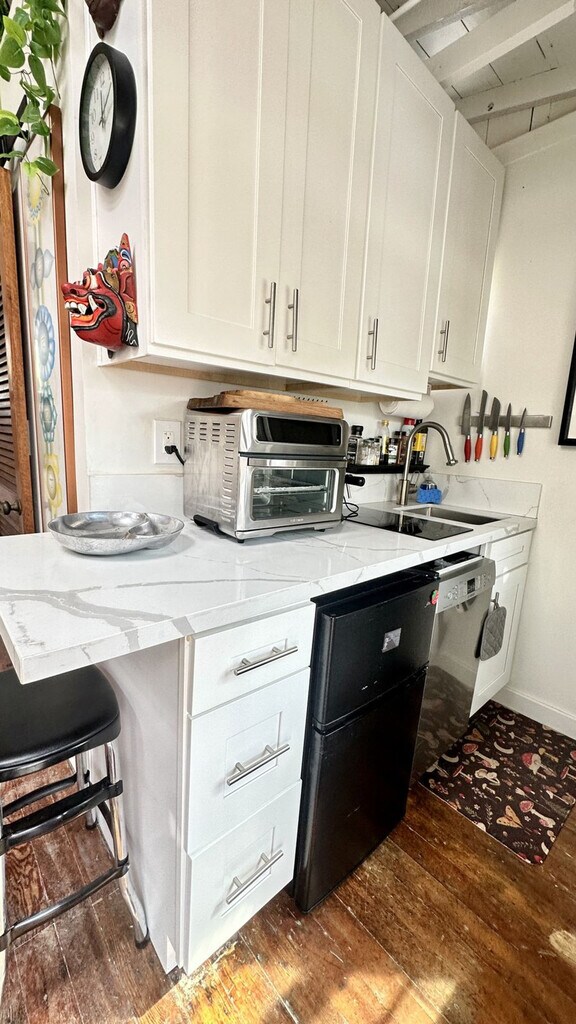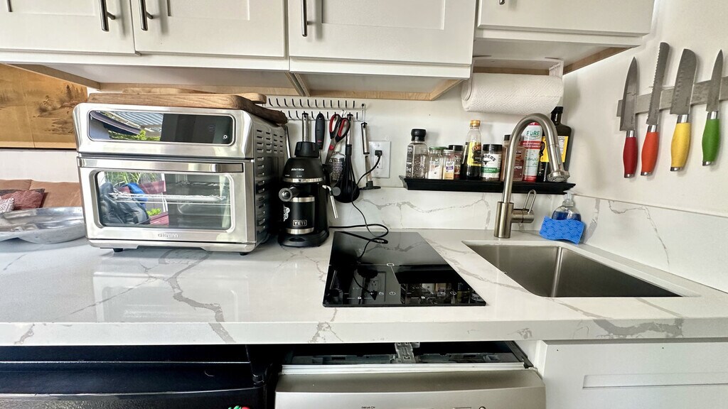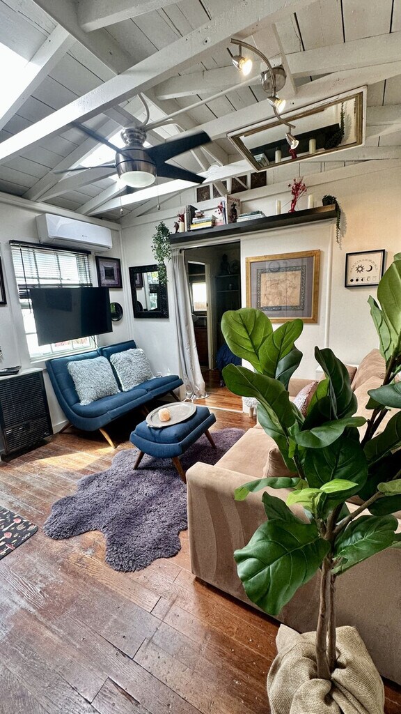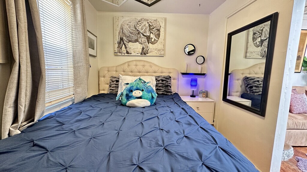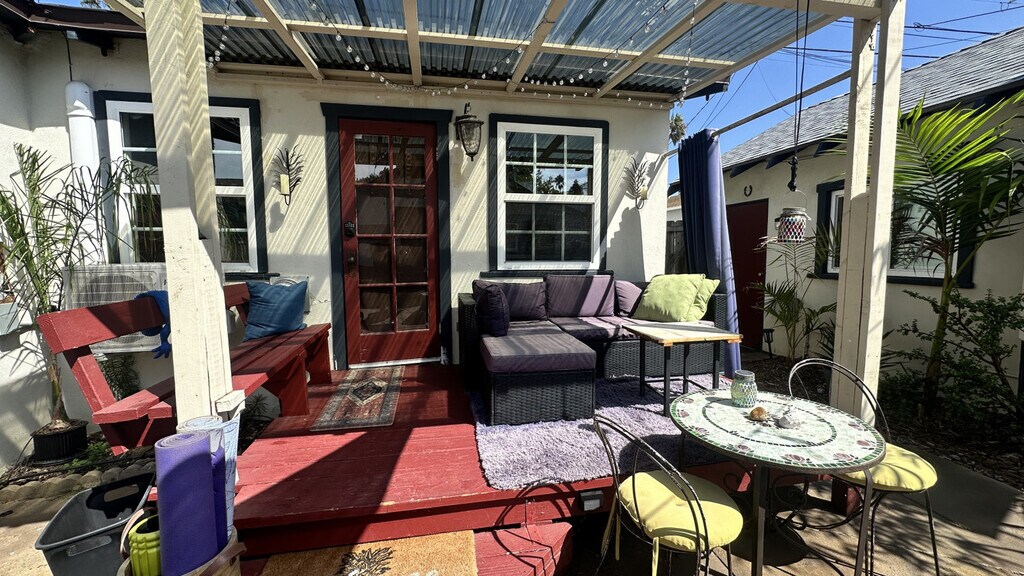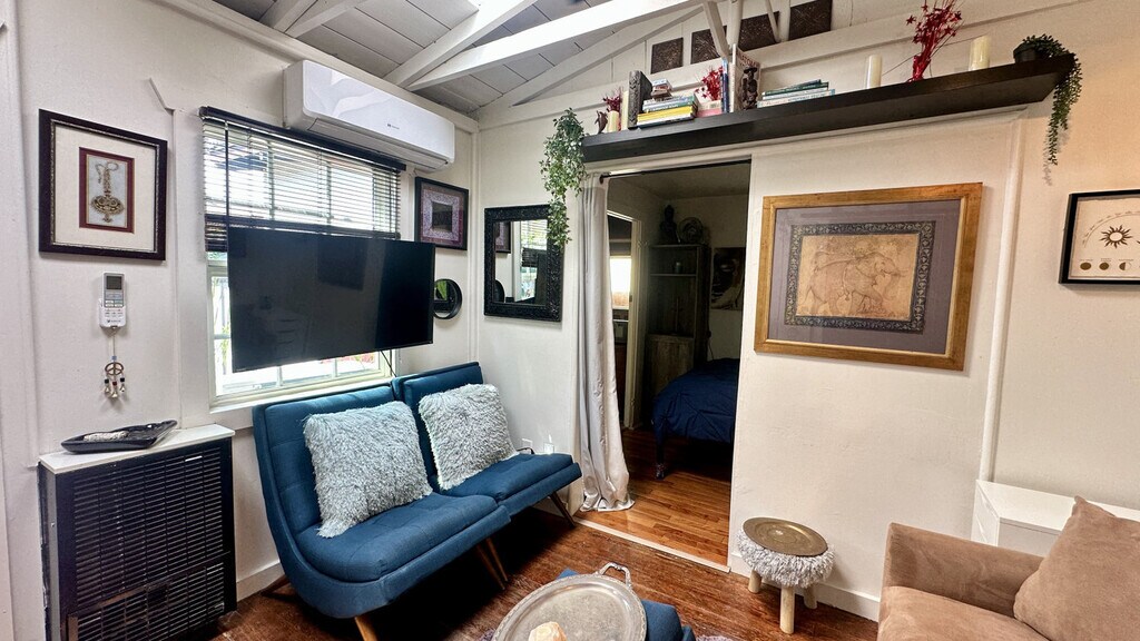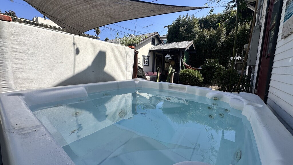 Feel at home in this petite, 1-bedroom, 1-bath casita located in a laid-back beachside neighborhood. This hippie shaman casita is full of eclectic vintage thrift-shop charm, decorated with antique African and Asian masks, artwork, and icons from around the world. Inside, you’ll find a cozy set-up that’s simple yet full of character, equipped with everything you need for quick meals. Guests share the outdoor yard, which includes plenty of chill spots to relax, an herb garden, a hot tub to unwind after a day of exploring, and a washer and dryer for your convenience. The home has an eclectic, artsy, thrift-shop style. Early check-in, late check-out, pack 'n play crib, beach wagon, surf/boogie boards, pet policy, and car rentals are available. There is a $100 fee per pet per stay. Parking in the back may be available for one vehicle. You’ll be close to the sand, local cafés, vintage shops, and all the good vibes that make this community special. The exterior of the home is monitored 24/7 by video and audio for the safety and security of guests and neighbors. This property is equipped with a device that monitors the environment inside the property (including noise levels, temperature, and motion) to ensure guests have a pleasant stay and our neighbors are not disturbed. Quiet hours are from 10 p.m. to 9 a.m. No parties are allowed. Undeclared guests will be charged $65 per person if not disclosed. Smoking indoors will incur a $200 charge. No unlawful use of our home (illegal activities or substances, etc.) is allowed. No unplugging, tampering, or covering any Wi-Fi, outdoor security cams, locks, etc. is allowed (fees will apply). For garbage disposal, do not put metal, plastic, egg shells, grease, potato peels, bones, coffee grounds, pasta, or celery in the disposal—throw them away. All pets must be declared, and undeclared pets (including ESAs) will incur a $200 fee per pet. For monthly guests, there is a utility cap of $200; guests will be responsible for any overages. The hot tub and yard are shared with others on the property. Blazing fast Wi-Fi and a smart TV with all the apps you need are available.