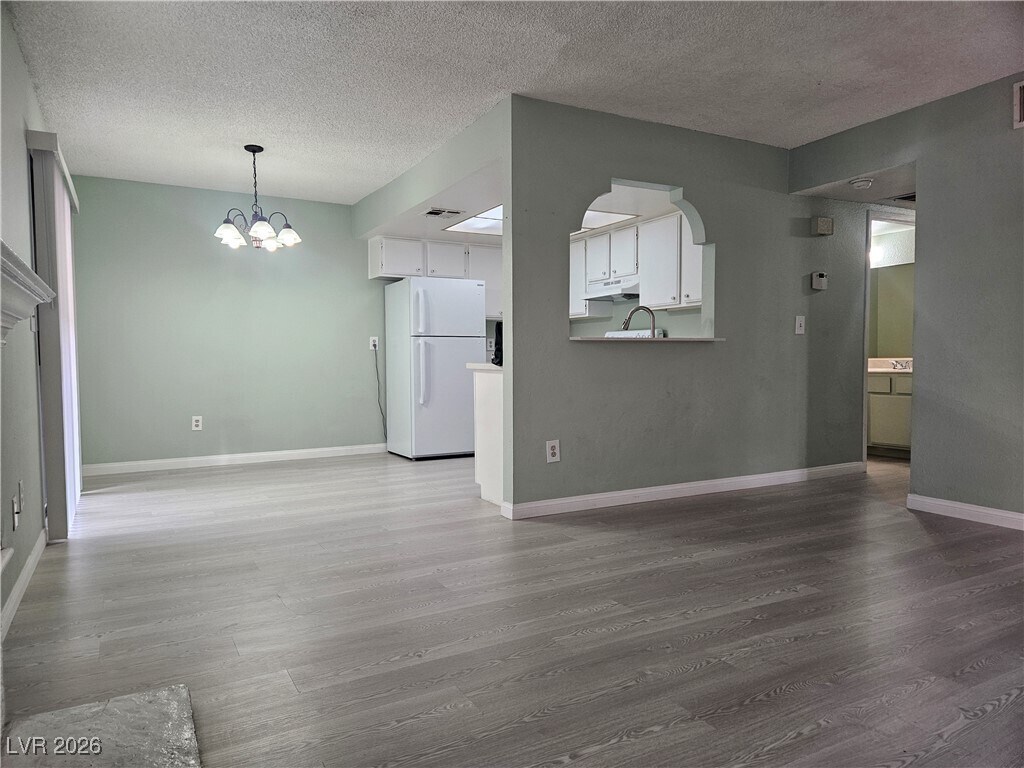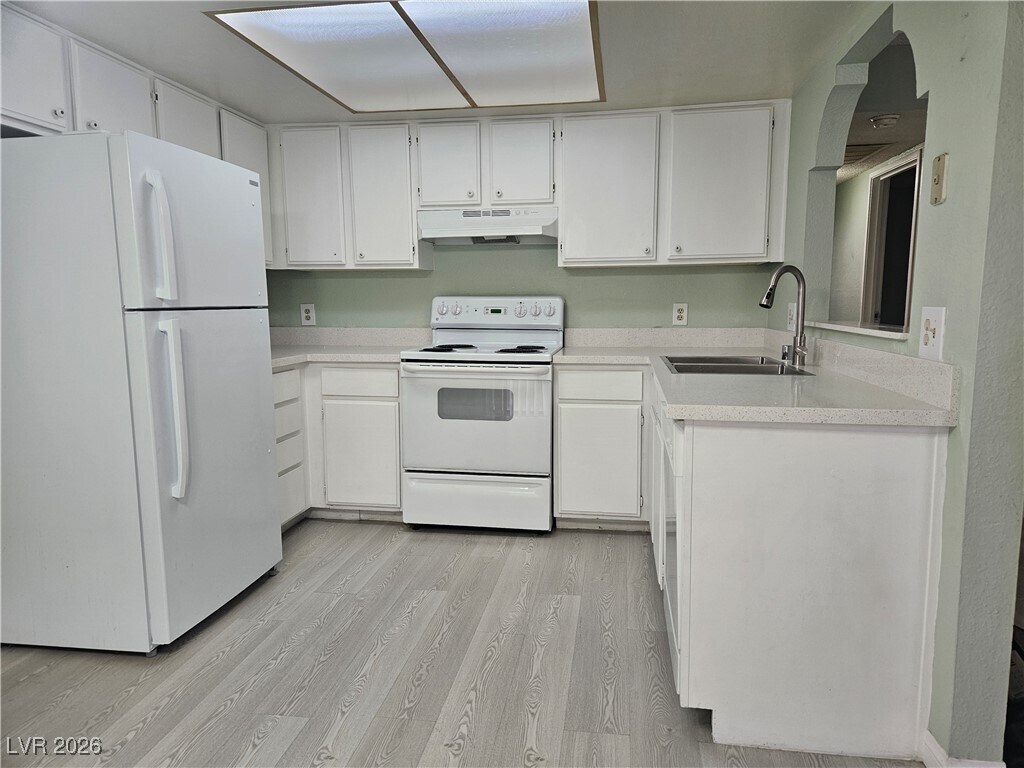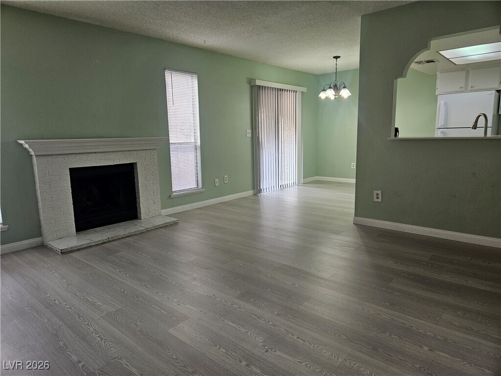 Nice & cozy 2Beds/2full baths condo in LV central. Ground floor unit, easy access for your convenience, has a universal lay out. Bedrooms and baths are bigger than the usual 10x10's. 3 separate balconies/patios on different areas of the house. Sliding door from dining/kitchen opens to patio#1, with view of greenbelt/grassy open space. Fireplace in the living room, a functional kitchen with all white appliances, cabinetry & a speckled BRAND NEW QUARTZ COUNTERS, STAINLESS STEEL SINK & FAUCET. A stackable washer /dryer. Patio#2 is in the primary bedroom between the bedroom and bath, while 2nd bedroom has French doors that opens to patio#3 and storage closet. Floors are upgraded to luxury vinyl planks and walls have custom paint all throughout. Airy, open floor-plan that is so inviting, you would love to call it HOME!