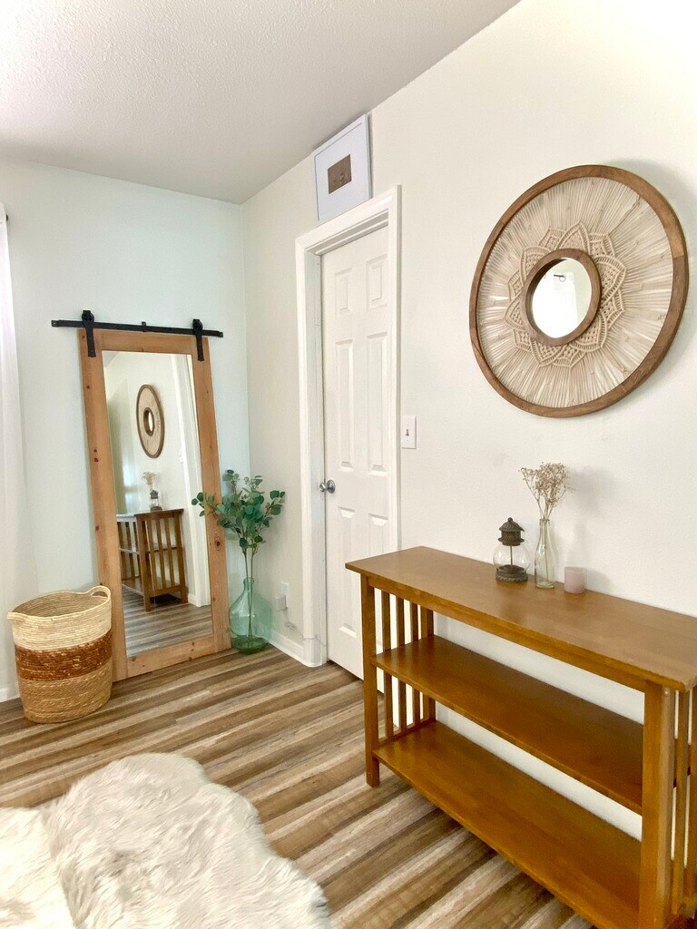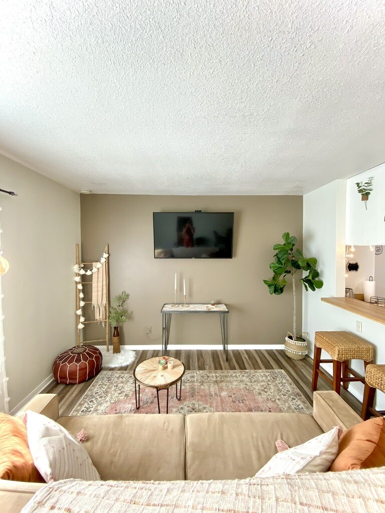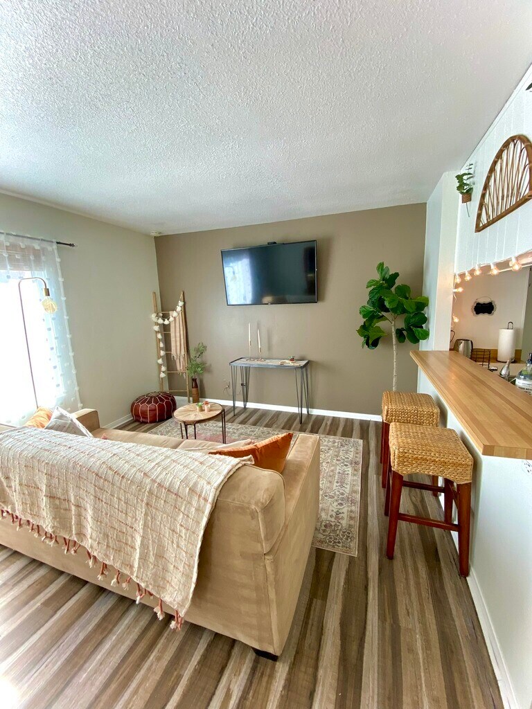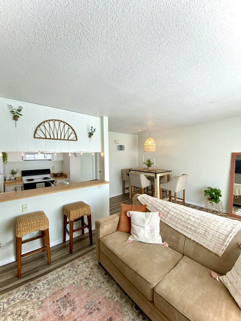 Boho luxurious onebedroom apartment in gated community with private bathroom. Kitchen with fridge microwave range. Dining table with 4 chairs. Wifi. Pull out couch with queen mattress. Flat screen tv w Apple TV. Near downtown, beaches, walking distance from grocery stores and restaurants. Air conditioning heating. Peaceful, quiet county atmosphere, urban setting, central to stay in our luxurious Boho style apartment in Normal Heights, AKA the heart of San Diego Our spacious 1bedroom condo with wifi and AC features all the amenities youll need and FREE PARKINGPrivate Condo Gated community Free WiFi FULL KITCHEN electric kettle, toaster more Full bathroom with bathtub Bedroom with Full XL memory foam mattress Living room with TV, pull out couch and deskdining table Complimentary coffeetea sugarPowered by