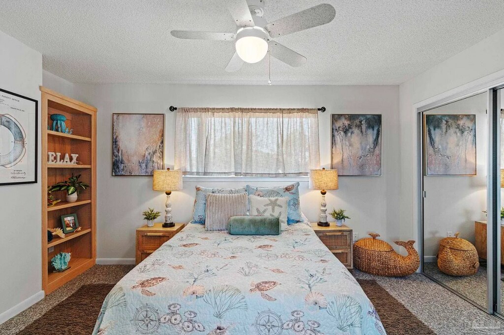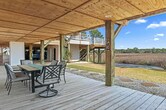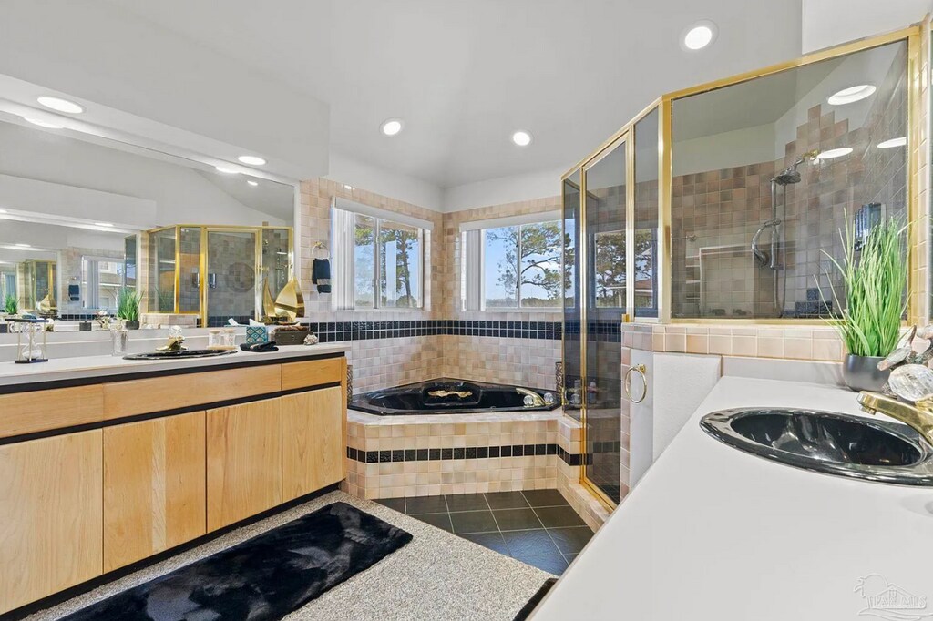 Welcome to this stunning custom-built waterfront home 3-bedroom, 2-bath estate features breathtaking panoramic water views, abundant wildlife, and a large lot that give privacy from neighbors. The living room has a vaulted ceiling with a stained glass dome that illuminates a beautiful pattern during the daylight and custom built-in shelving with storage and space for your television. The kitchen has a new stainless steel Frigidaire dishwasher, and a refrigerator along with a built-in microwave and breakfast bar. The primary suite is located on its own wing overlooking the Bayou. One of the additional bedrooms offers an en suite bathroom and the other bedroom has sliding doors which lead you onto a deck that wraps around the entire rear of the home. The deck also has a staircase which leads you downstairs to the spacious covered patio and two-car garage. There is a tool shed below the home as well to store all your outdoor gear! This location is prime with a short distance to restaurants, shopping centers, and a 35 minute drive to Pensacola Beach! Schedule your showing today!
