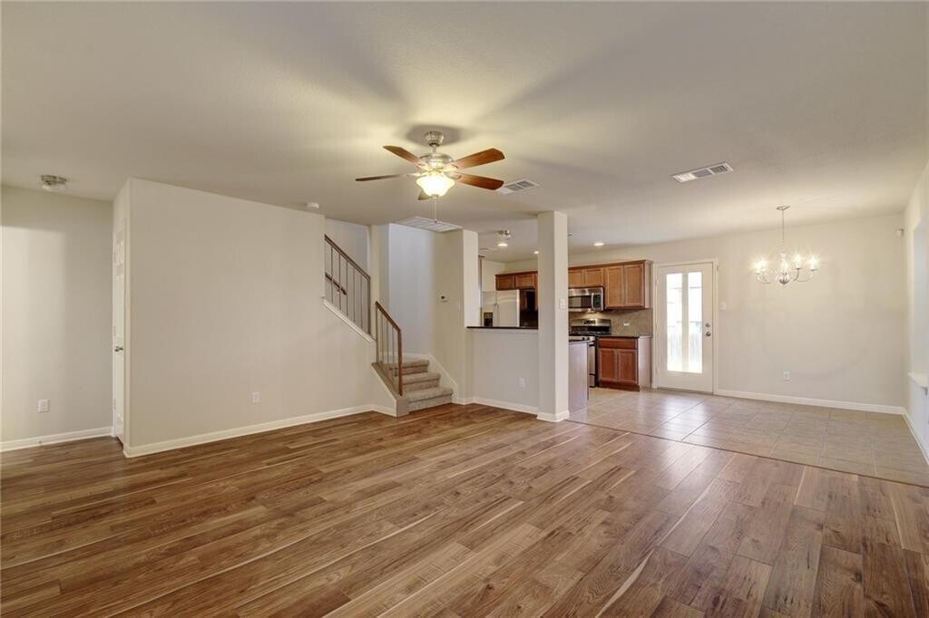 Wonderful 3 bed/2.5 bath 2-story home in Kensington Trails with open floor plan, neutral paint, and laminate flooring. Upstairs has recent vinyl plank wood look floors so no carpet in the entire house! This makes it a breeze to clean. The kitchen has granite counters, tile backsplash, and stainless steel appliances. The master suite maintains full bath double vanity, separate tub and shower, and walk-in closet. Spacious backyard with a nice covered patio and shed. Neighborhood amenities include a pool, playscape and fun neighborhood movie nights. The Rent includes Washer/Dryer/Fridge/monthly Air Filters and more! MLS ID 5718261