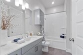 1 bed, 1 bath, with attached garage. Private Fenced-In Yards & Covered Patios with Weekly Lawn Care Included in lease. First-Floor Entrance with No Adjoining Homes Above or Below, Doggie Doors available in some units, Wood Plank-Style Flooring, Tall, Expansive Windows, 2-Inch Custom Window Treatments, Quartz Countertops in Kitchen & Baths Modern Tile Backsplash, Under-Cabinet Lighting, Pantries with Built-in Shelves, Stainless-Steel, Under-Mount Kitchen Sink with Retractable Faucet, Dual Sinks, Garden Tubs Full-Size Washer/Dryer Connections, Walk-in Closets,9- to 10-Foot Ceilings & 8-Foot Doors, Programmable Thermostats, Energy-Efficient Insulation, Reflective Radiant Barrier Roofing & Extensive Extra Insulation, Double-Pane Windows, 16 SEER Heat Pump HVAC Pet-Friendly Community with Walking Trails & Waste Stations, Private Tanning Facility Business Center with 27†iMac & PC Computer Stations, Outdoor Wi-Fi Lounge Package Lockers & Mail Center, Community Events, Including Catered Brunches & Community Socials, Complimentary Starbucks® Wi-Fi Café, Spectrum All-fiber High Speed Internet, Eco-Friendly, Health-Conscious, Non-Smoking Environment, 24/7 Emergency Maintenance Service, Valet Trash Service, Onsite Mangement